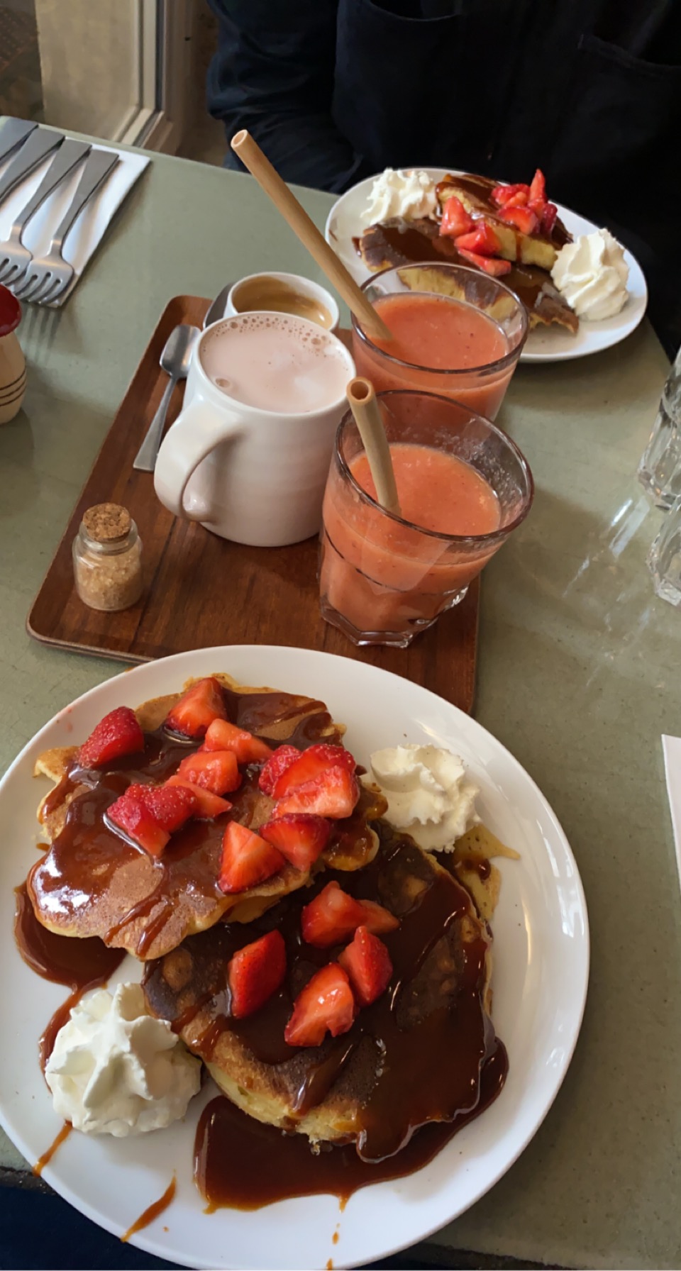 Restaurant trouvé par hasard en me Baladant, de ce que j’ai pu comprendre le le week-end seul les brunchs sont proposés . Le chai latte et le smoothie plutot bon , mais assez déçu de la salade et des pancakes qui étaient sec ! Par contre j’ai trouvé le crumble excellent