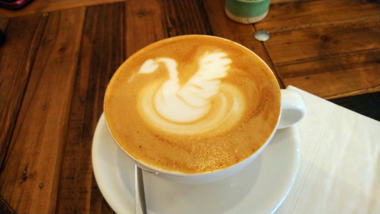 Meilleur café en quatre semaines de voyage. Du plat blanc au menu. Multilingue avec un sens de l'humour. Une trouvaille très chanceuse.
