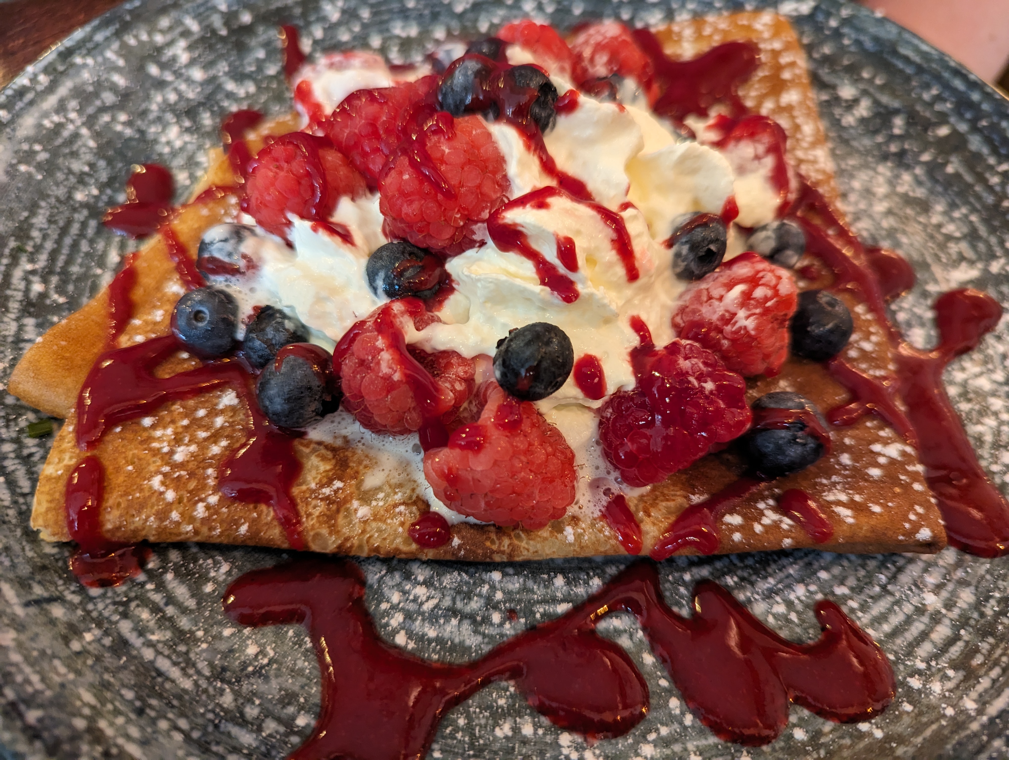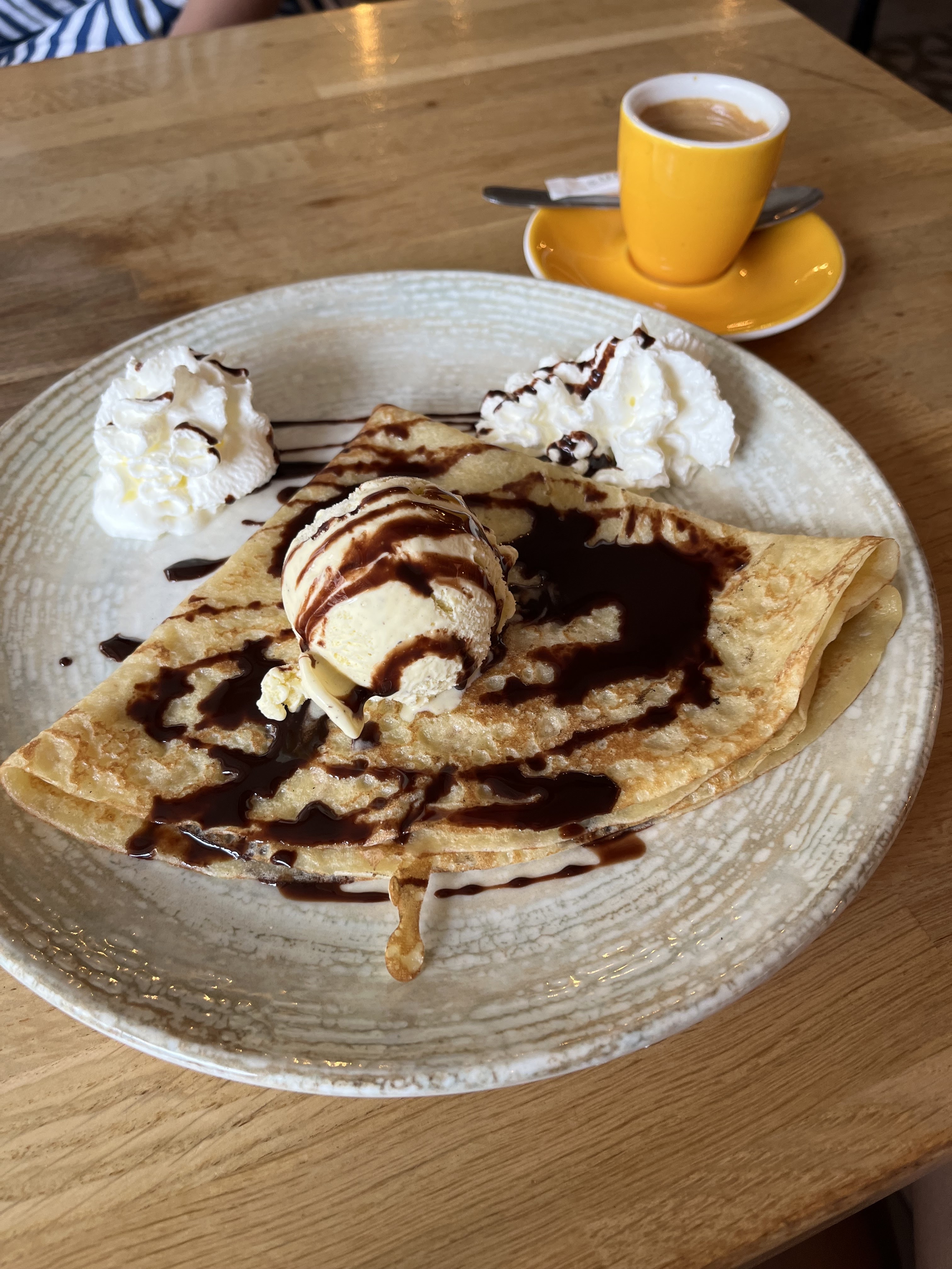 Je suis venu ici pour un petit-déjeuner tardif. Crêpes, croque monsieur, pain doré….tous excellents. Service amical et attentif.