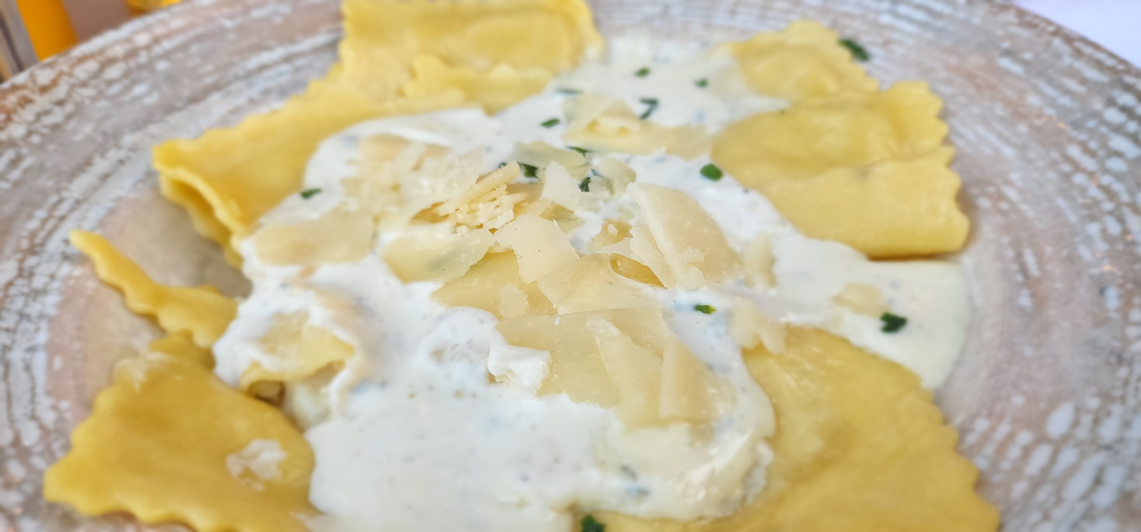 Nous avons mangé du pain perdu et cinq raviolis au fromage. Le pain perdu était à tomber par terre et les raviolis étaient magnifiques. Le pain perdu était servi avec de la glace à la vanille faite maison, ce qui était parfait.