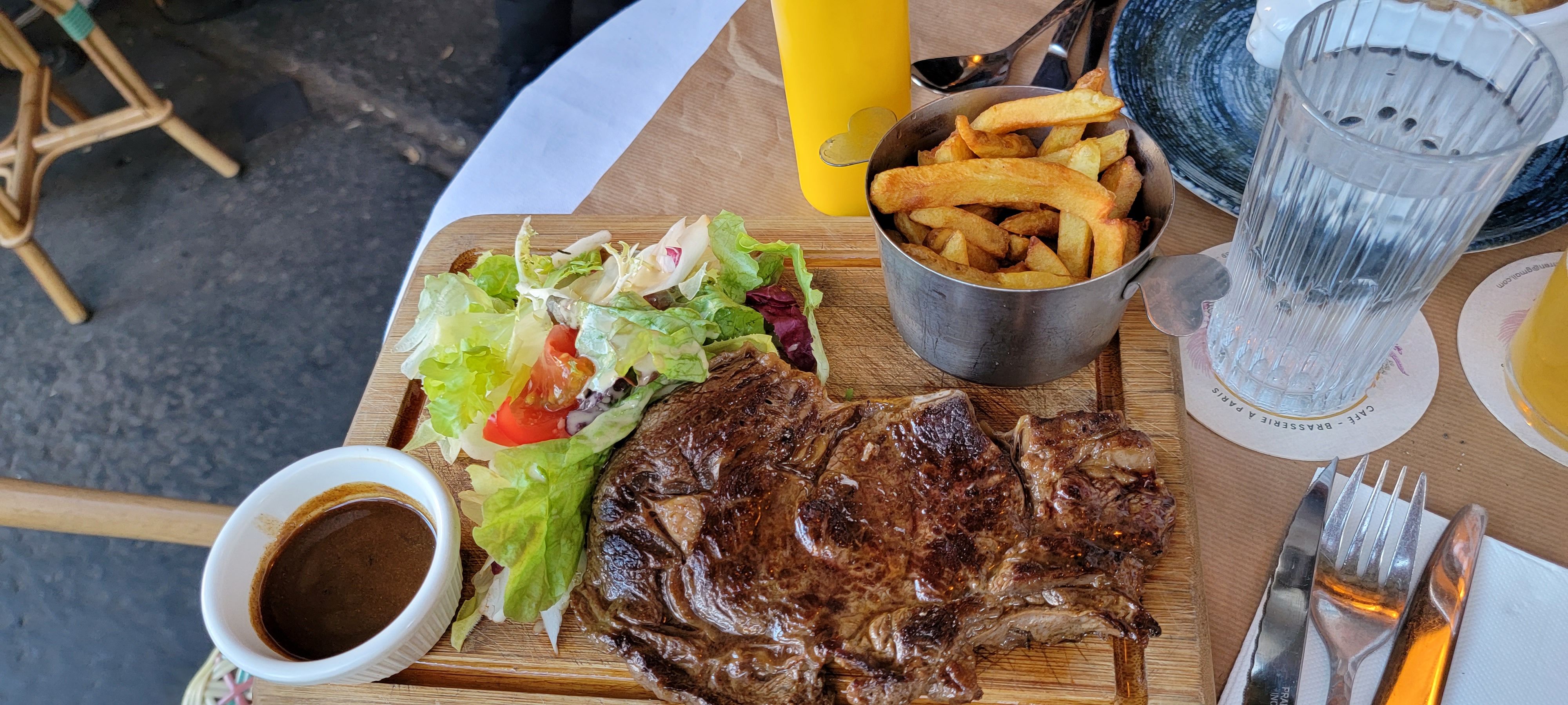 A l'origine, nous avions une réservation chez Madame Brasserie mais il y a eu une grève à la Tour Eiffel, donc la réservation a été annulée. Nous sommes allés au Café Fleur qui se trouvait à proximité. J'y suis déjà allé quelques mois auparavant et j'ai adoré, donc j'étais content d'y retourner. J'ai pris le steak qui était délicieux et mon partenaire a pris le poulet qu'il a également apprécié. Les assiettes sont pleines et bien présentées. L'ambiance était géniale et nous étions bien assis dehors. Je recommande vivement cet endroit.