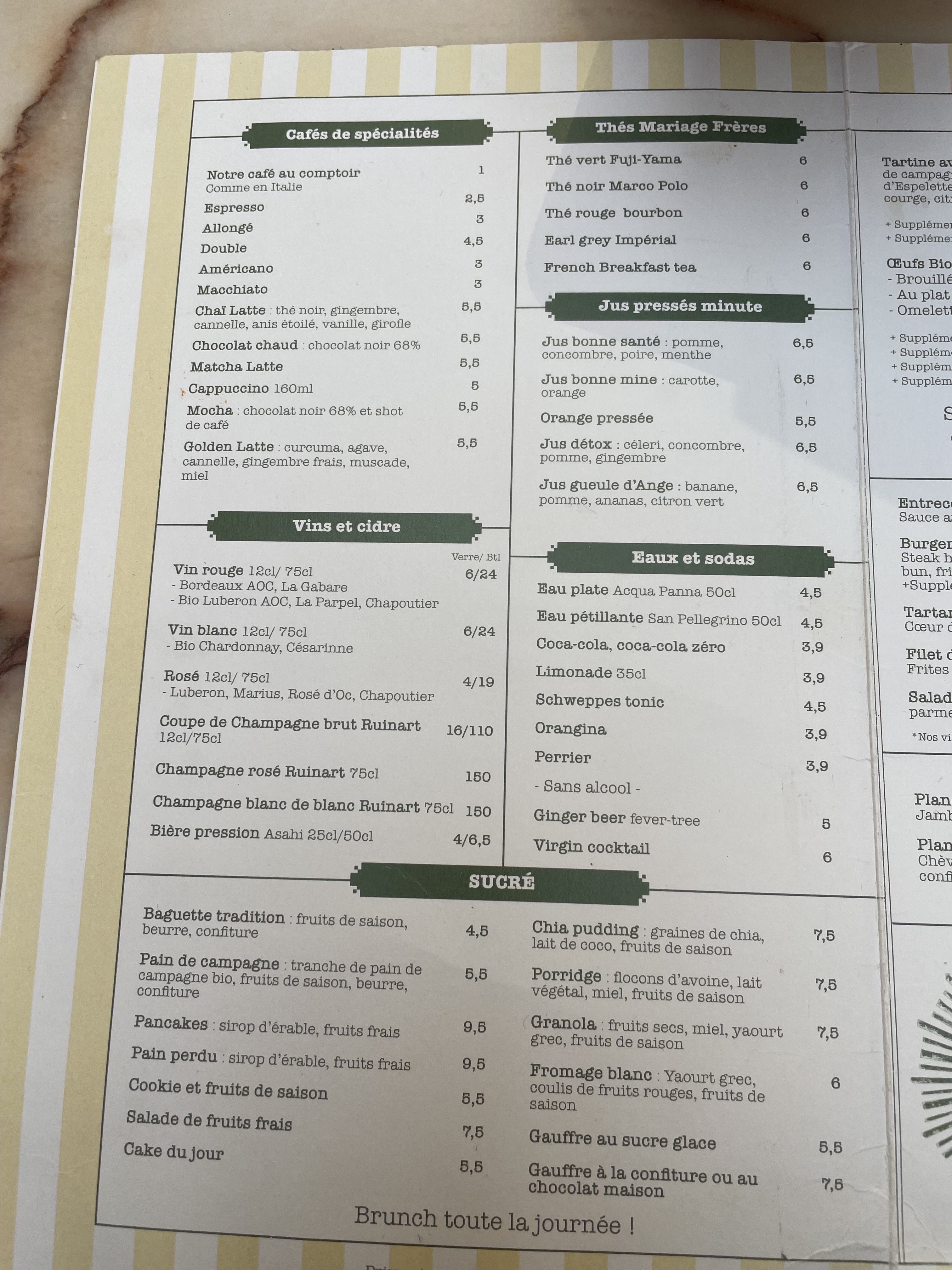 Un super brunch à toute heure de la journée. Les jus sont frais, les pancakes comme aux États-unis et les pains perdus sont excellents. Si l'on rajoute l'accueil sympathique et le service impeccable, on n'est pas loin de la perfection. Une adresse à retenir ou plutôt une adresse à ne pas manquer.