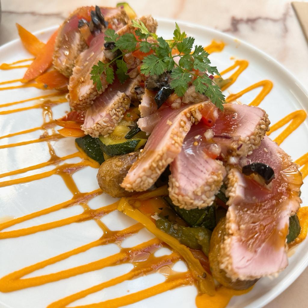 Les huîtres étaient fraîches. Le tataki de thon était savoureux car les légumes allaient très bien avec le thon. Fortement recommandé.