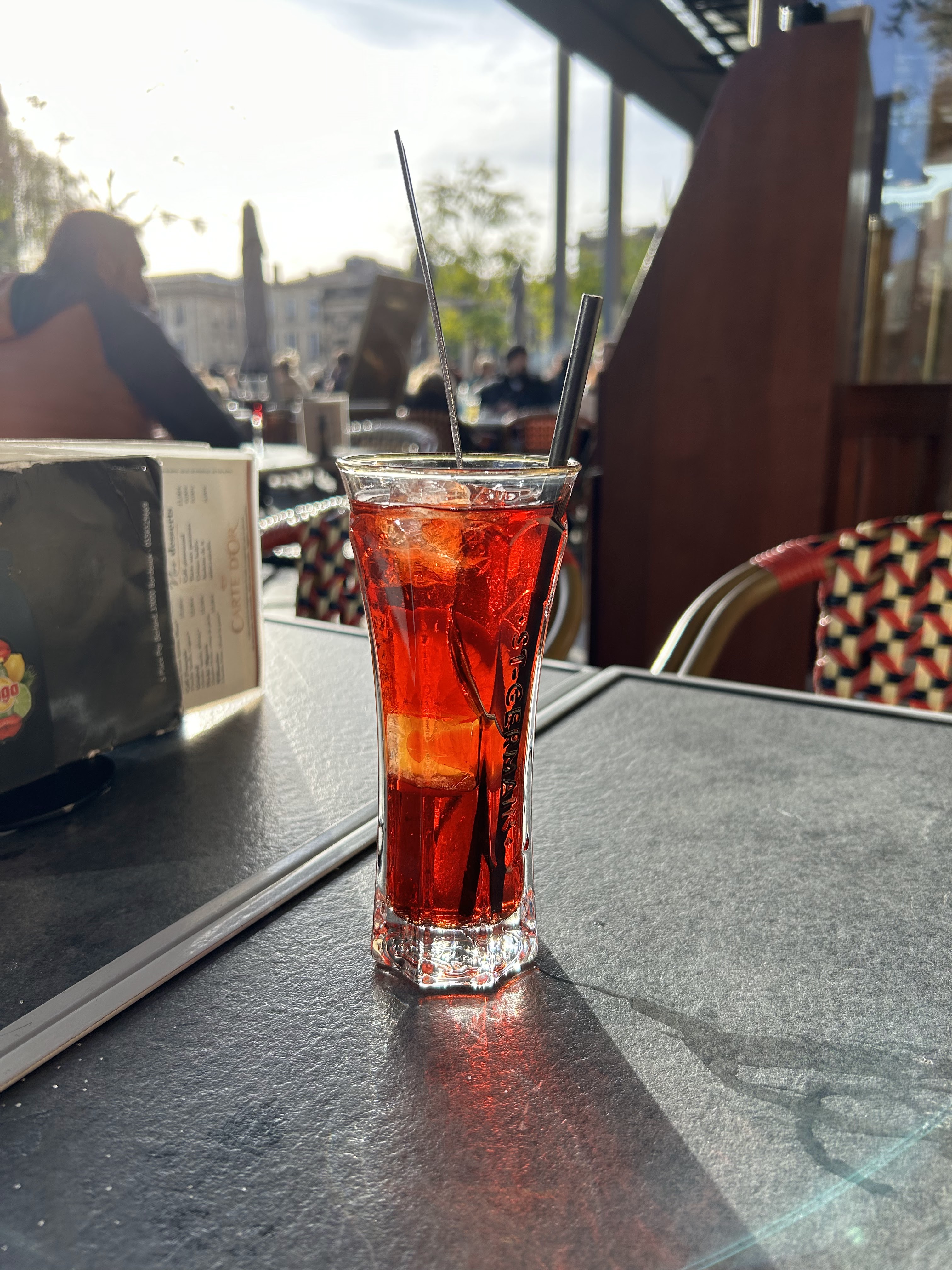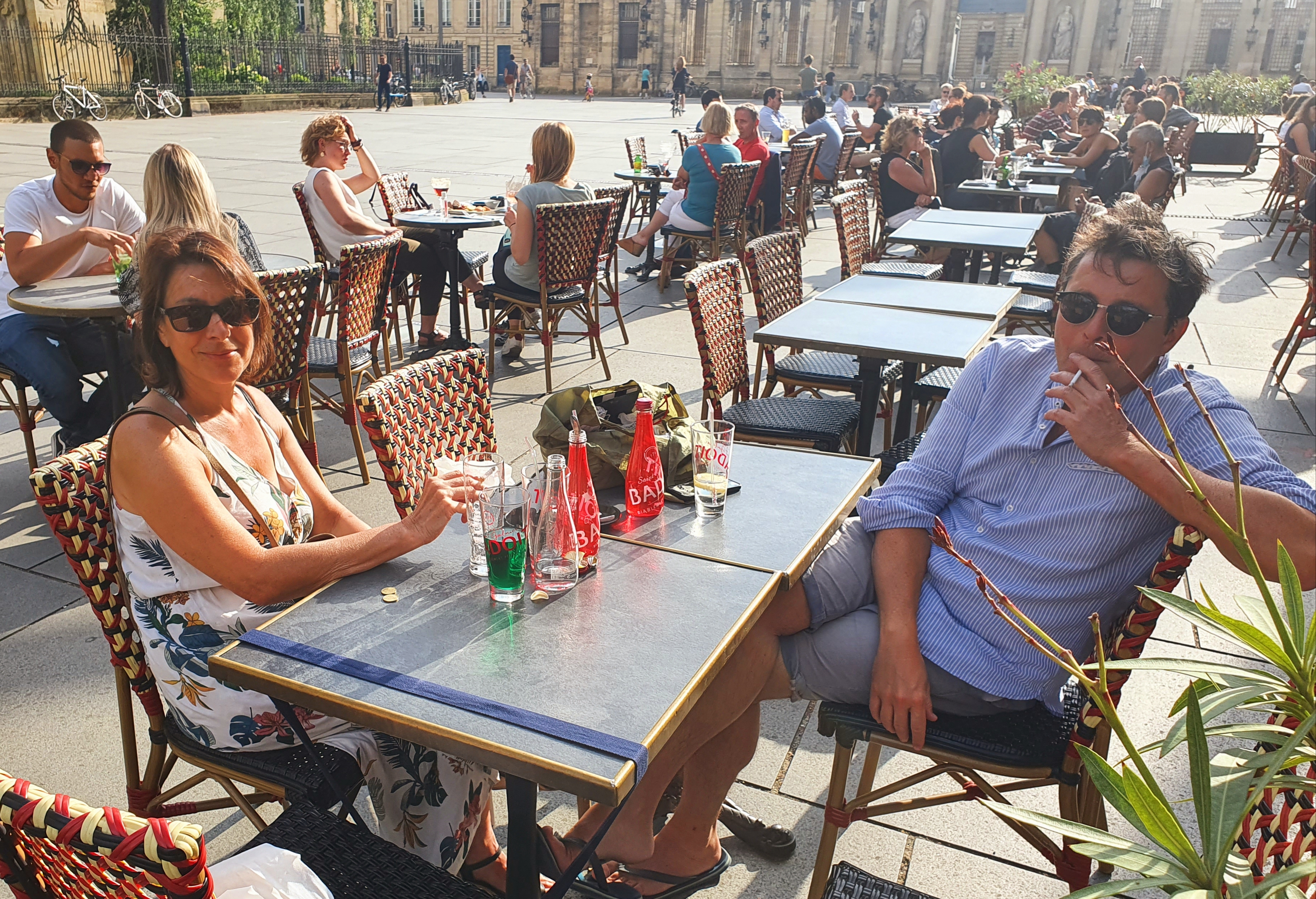 Une petite pause boisson dans ce lieu culte de Bordeaux devant la cathédrale et le sapin de verre illuminé ! Un moment magique !