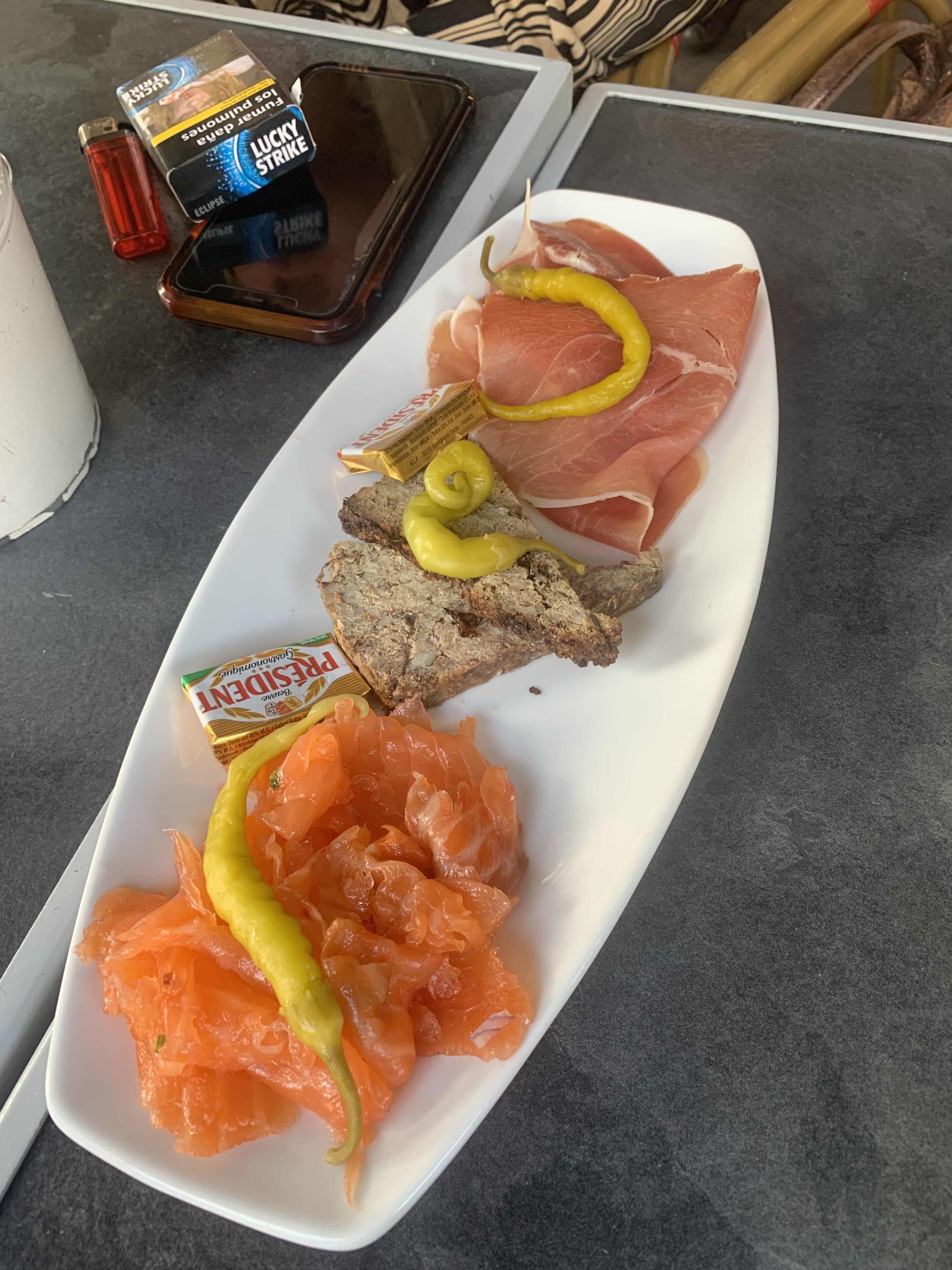 Temps d’attente très long avant d’être servis. La planche à 18€ ne vaut pas du tout son prix !!! Quantité et qualité très faibles ! Aucun assaisonnement sur le saumon, pâté sec, et jambon au goût rance. Pour 18€ c’est une honte !!!! Le cadre est sympathique avec une très belle vue sur la cathédrale Pey Berland mais c’est tout.