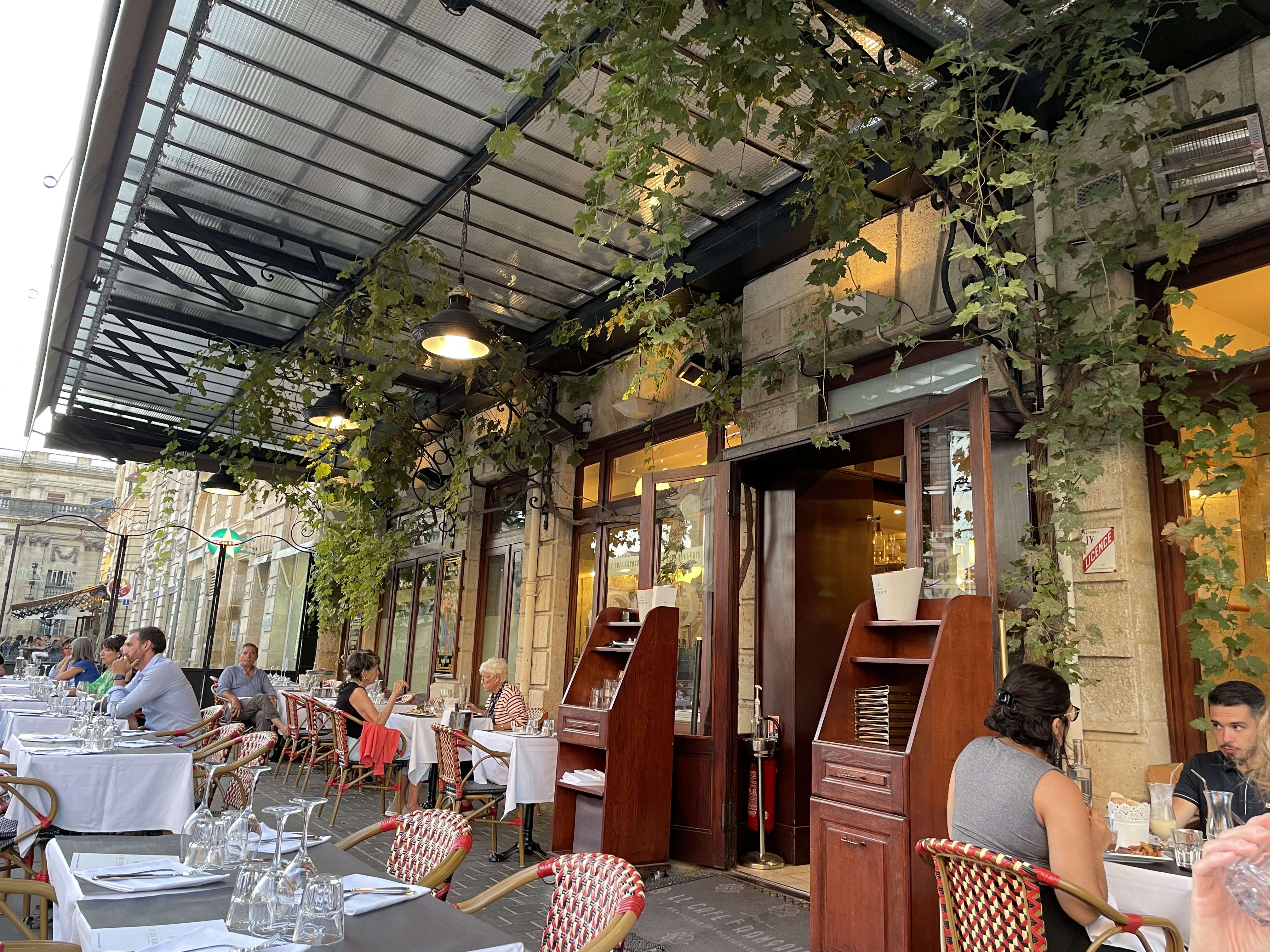 Pause déjeuner en semaine lors de notre visite de Bordeaux Établissement situé en plein centre à côté de l hôtel de ville Grande terrasse extérieure, accueil et service professionnel et je remercie de m avoir trouvé une table en intérieur à cause de mon problème avec le soleil Choix du menu du jour Entrée et plat à 23,90€, café à 2,50€. Les plats sont bons mais je m attendais à une autre cuisine un peu plus savoureuse et à la hauteur du standing de cet Établissement c est pour cela que j ai mis 4 étoiles