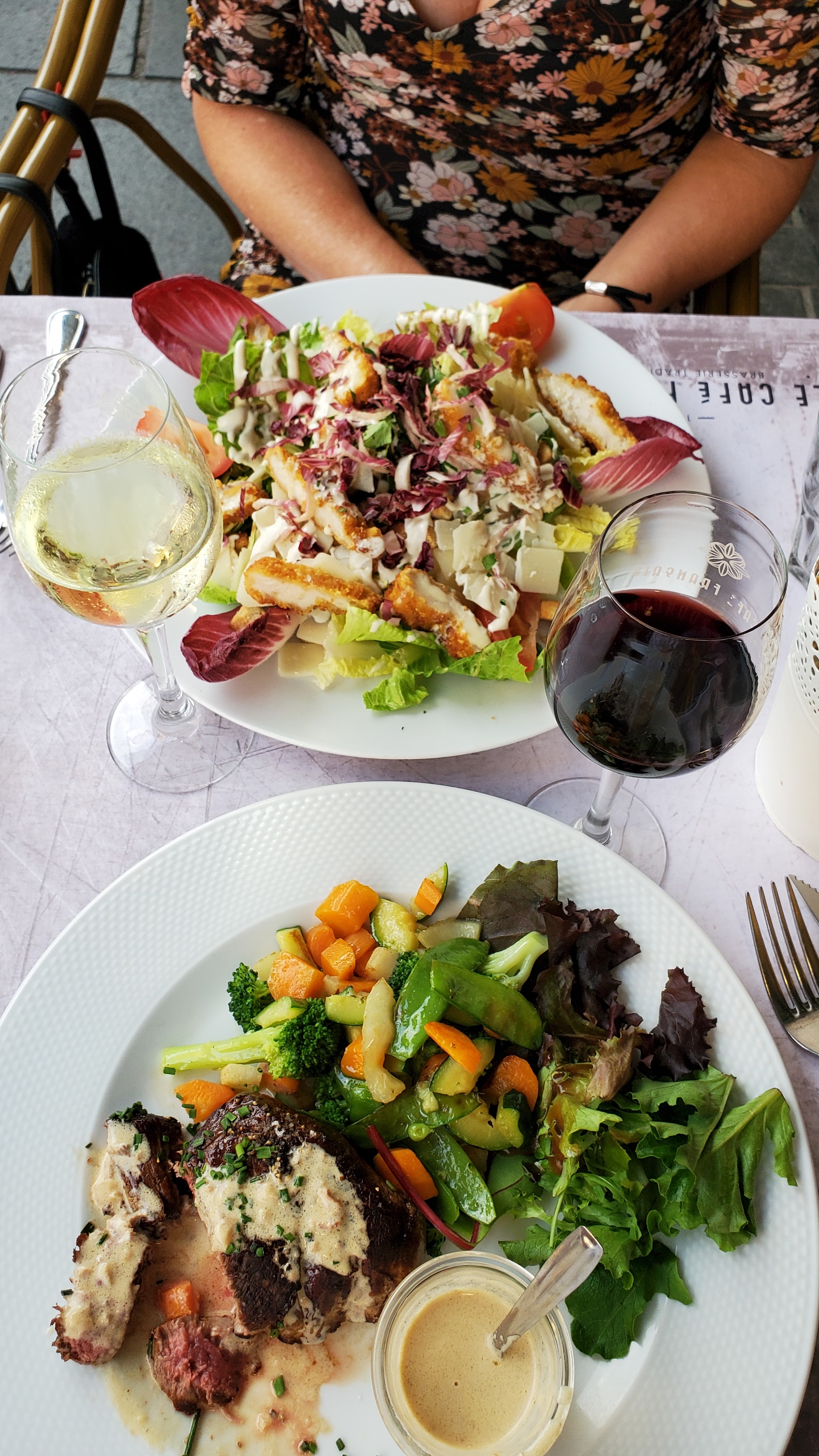 Terrasse qui donne sur l’hôtel de ville, très belle vue et endroit calme pour un dimanche soir, ça fait du bien ! Par contre, le saumon n’était pas des plus frais !!