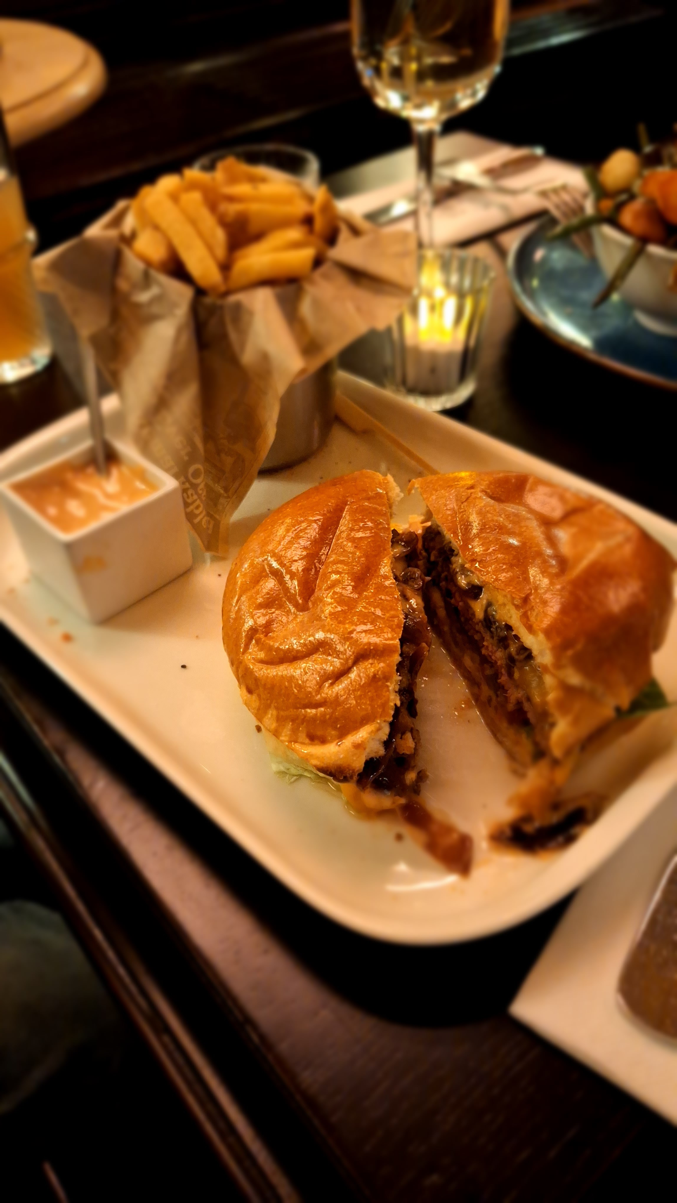 Vraiment une super expérience - un personnel sympathique qui était heureux de communiquer avec nous en anglais après avoir entendu notre terrible tentative de français. Le hamburger et le poulet rôti étaient délicieux et une bonne sélection de boissons. Une excellente destination de déjeuner dans la région.