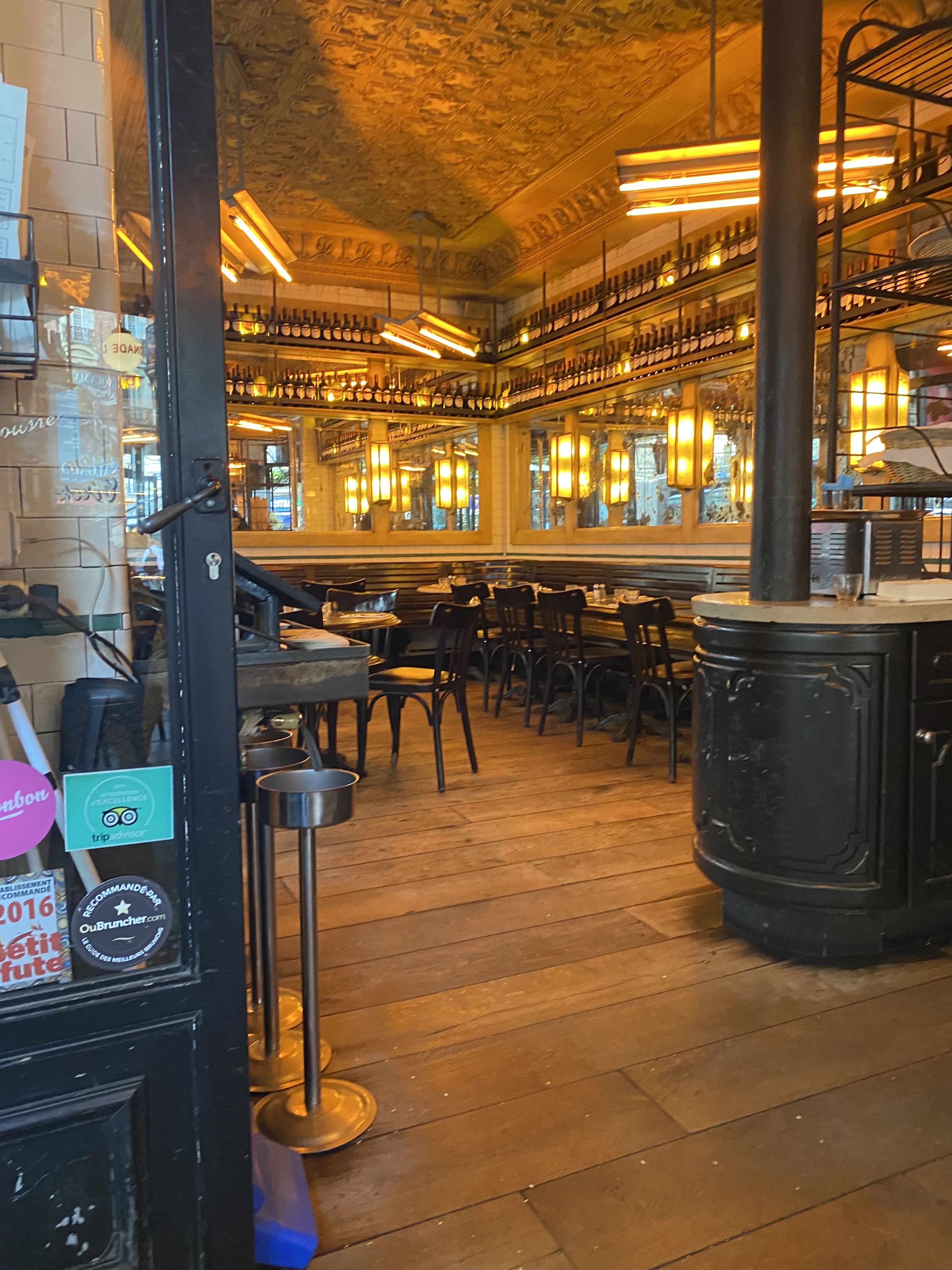 Nous étions ici en avril pour notre dernière nuit à Paris et avons décidé de revenir pour notre dernière nuit ce soir de novembre. Ce qui nous a attiré la première fois, c'est un serveur qui a dit : « La nourriture est excellente, mais le service est horrible ». Aimer! Un peu dérangé par la nourriture ET le service était parfait ! Nous avons adoré l’ambiance. Il y avait beaucoup de locaux et de touristes. À la prochaine!
