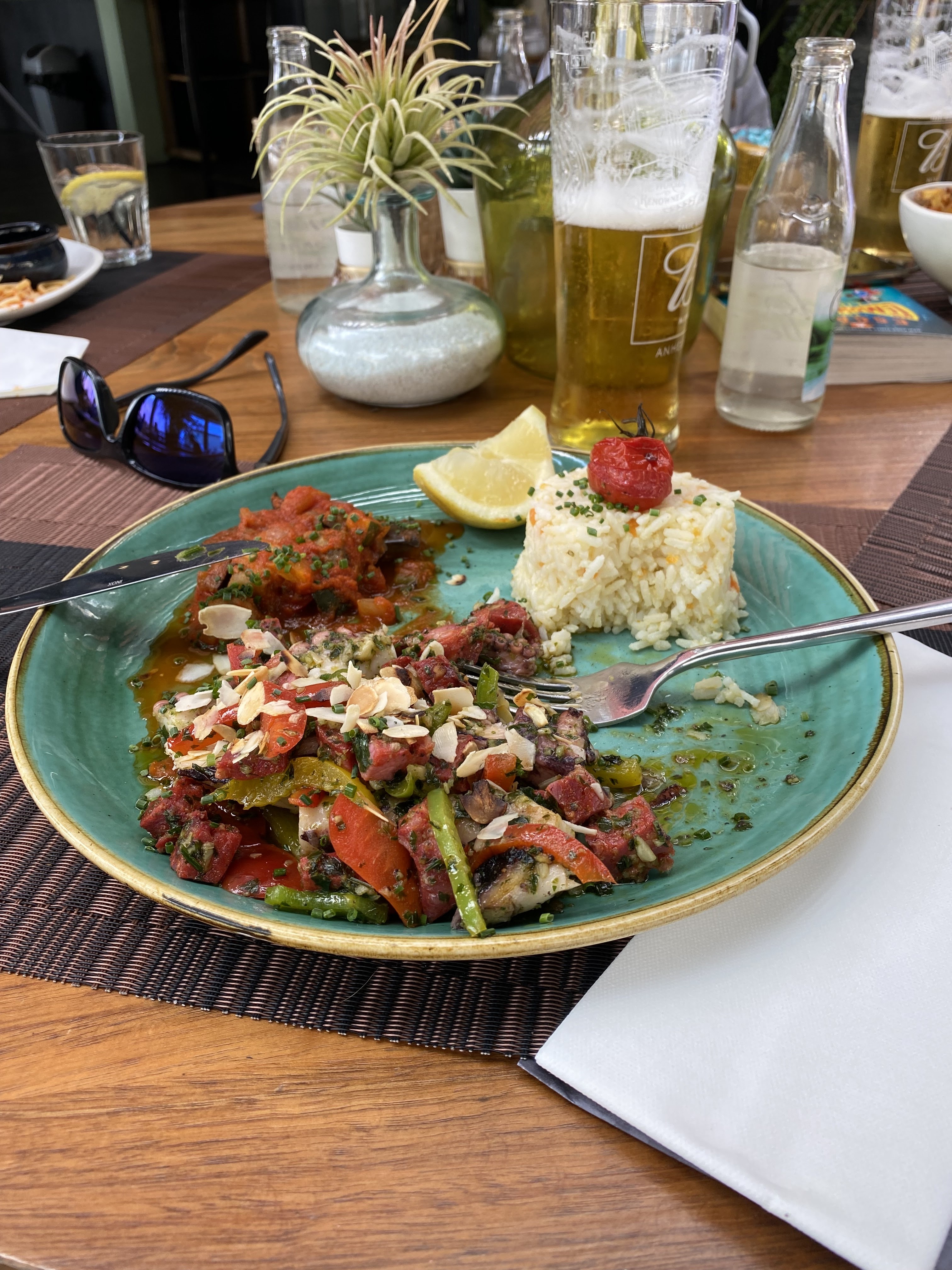 Nous avons été très agréablement surpris par la cuisine ET le vin très savoureux ! Le rapport qualité-prix était très bon !! J'ai eu les calamars au chorizo comme plat principal et c'était très savoureux, et en entrée j'ai eu les sardines et elles étaient aussi savoureuses. Le vin coûtait 28 € la bouteille et provenait d'un domaine viticole de Sainte Maxime. C'était également très savoureux, donc que des éloges pour ce restaurant. Le service était également très serviable et sympathique.