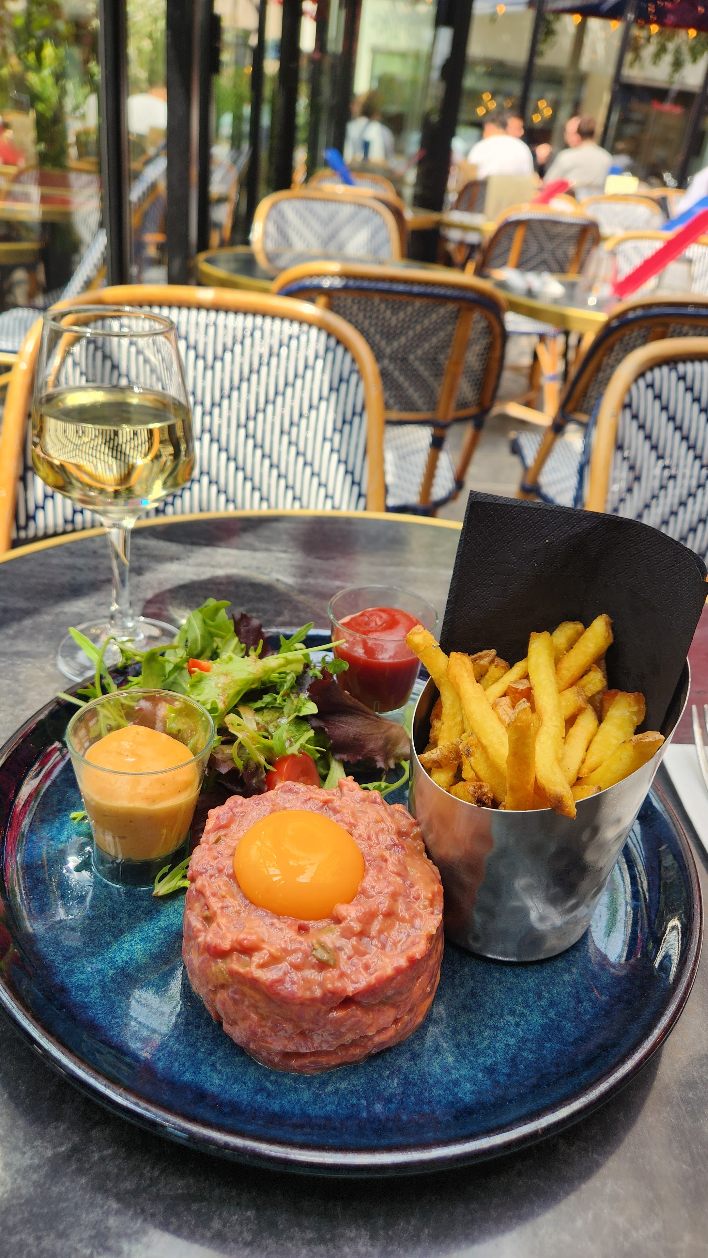 Dans un coin un peu plus calme du quartier c'est bien ! Terrasse simple et sympa Service cool et agréable, rapide. Carte de café efficace. Croque monsieur très correct même si à 15 euros. Burger très bon il paraît Frites chaudes et croquantes (ça devient rare) Adresse à retenir un jour de shopping entre les halles et le marais
