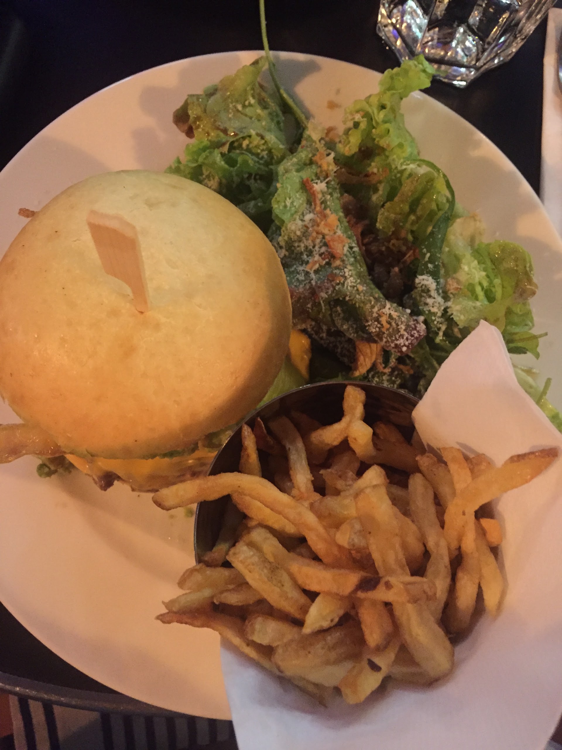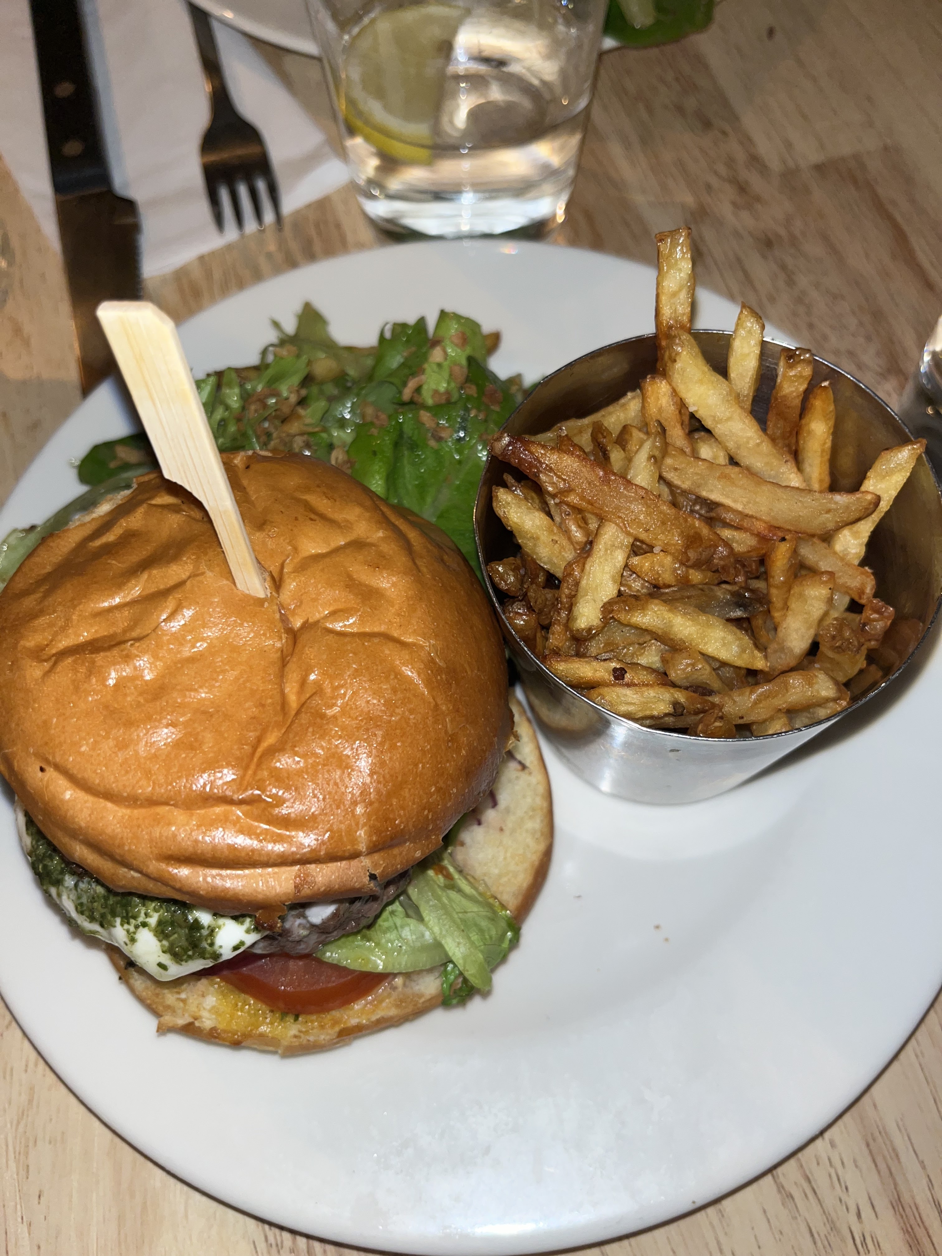 Situé dans un quartier chic de Bordeaux, ce restaurant propose une cuisine traditionelle. Nous étions en groupe et avons été bien accueillis par le personnel. Le burger italien que j'ai mangé était savoureux et riche en parfums. Le pesto et la burrata se mariaient bien avec le steak juteux. La salade apportait une touche de fraîcheur et les frites étaient également bonnes. Quant aux desserts, ils étaient nettement moins réussis : 9 euros pour du surgelé, en plus, difficile à couper... Edit* Peu importe le dessert n'était pas bon