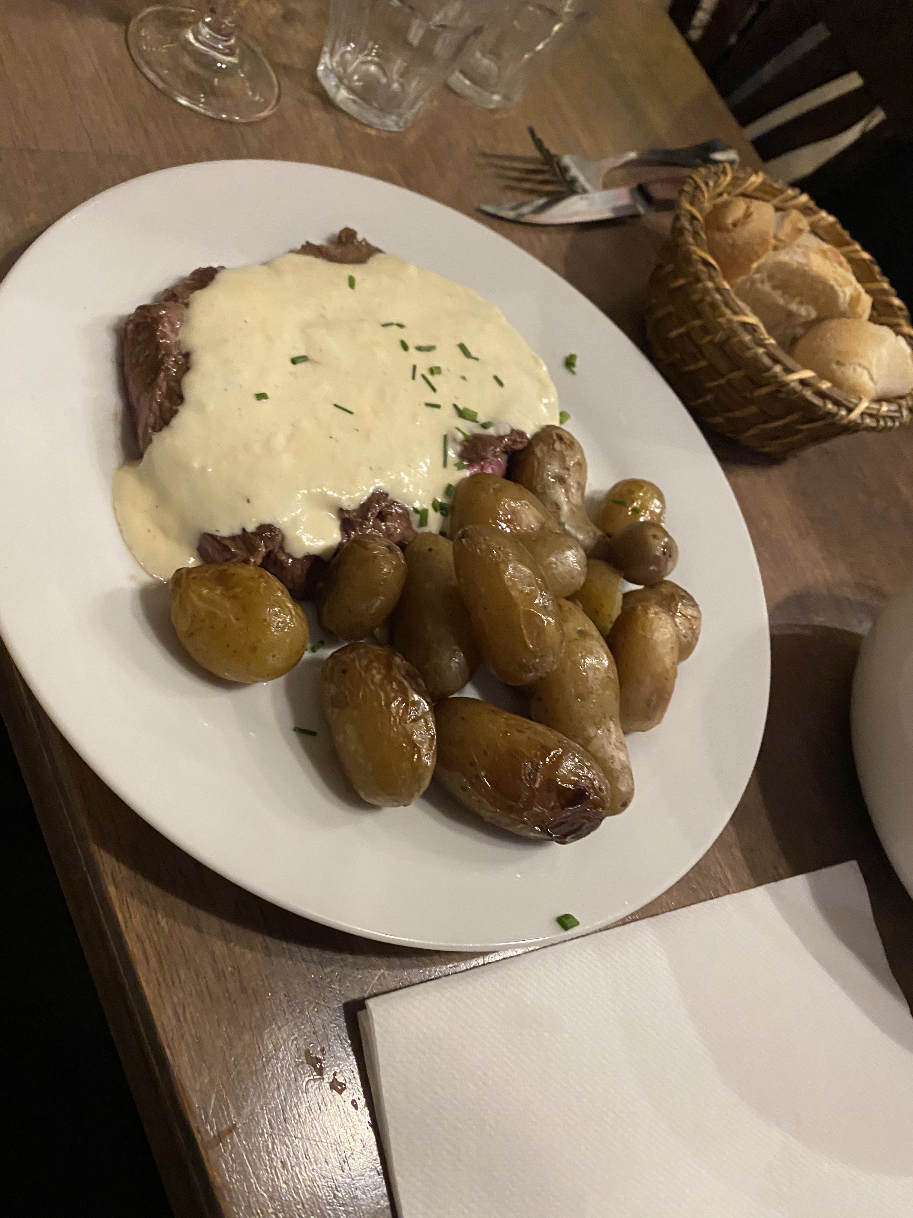 Vraiment pas sympa. Une sensation de déranger et un plat absolument pas travailler avec des pauvres pommes de terres vapeur sans assaisonnement. Bref tout sauf un moment agréable. Vraiment déçu.