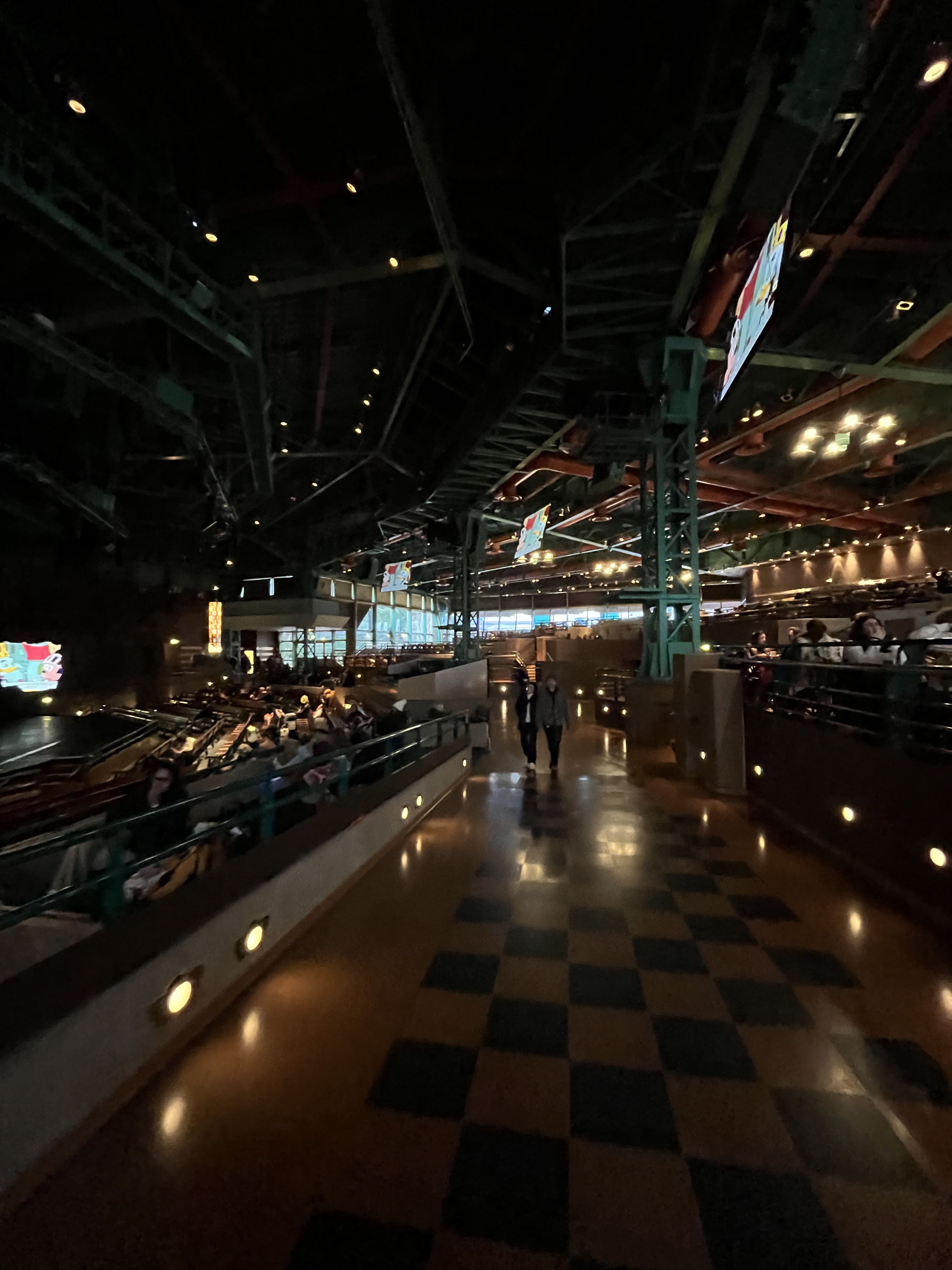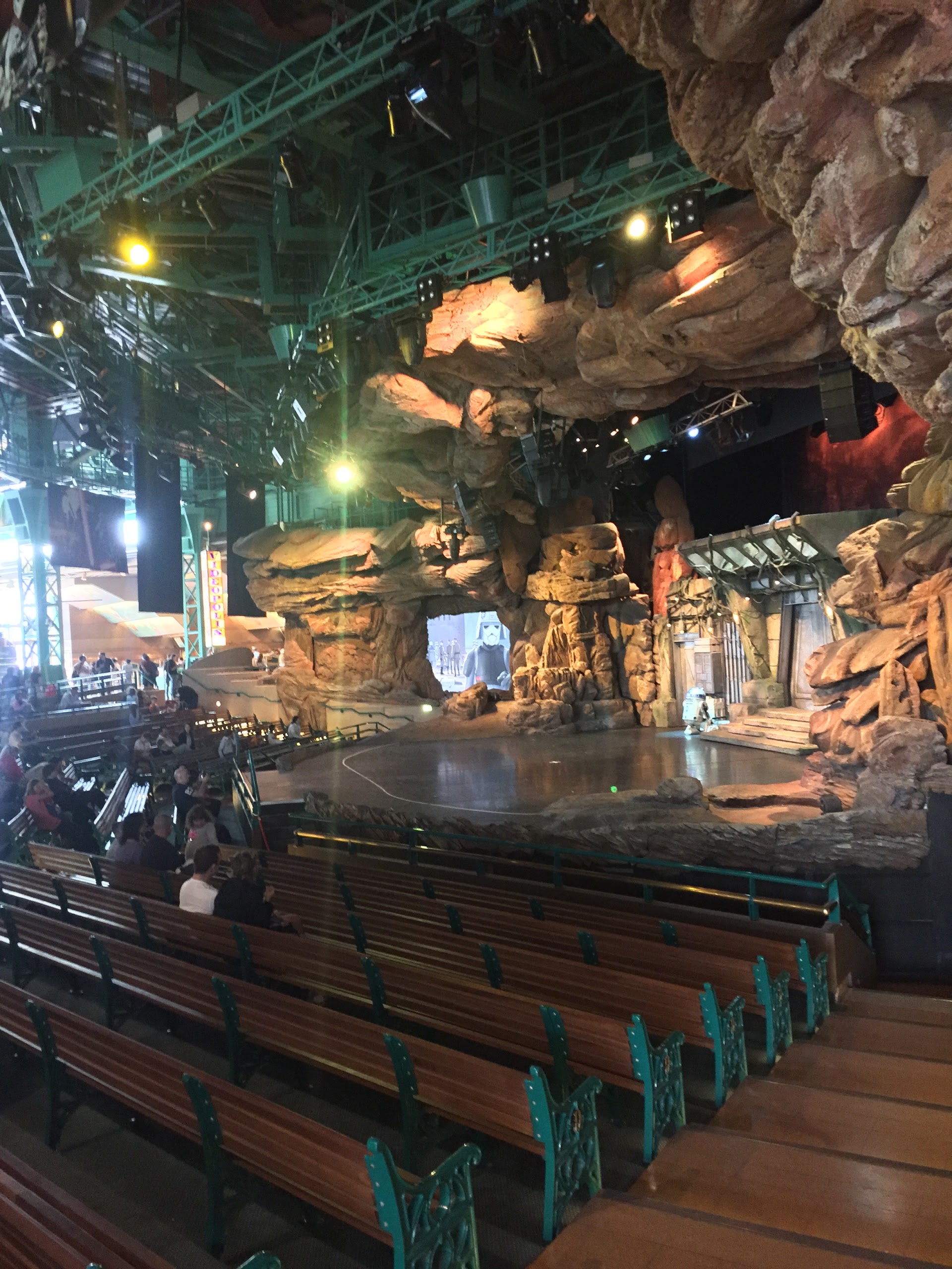 Prenez le temps de venir 30 minutes avant le spectacle. Enchaînés avec vos menu burgers et puis prenez une table 😀. Très bien si l'on tombe à la représentation. La salle est en train de type cinéma mais avec une surface démesurée. il y a beaucoup de place , mais évidemment beaucoup de monde. Pas forcément une priorité mais ça mérité le détour.