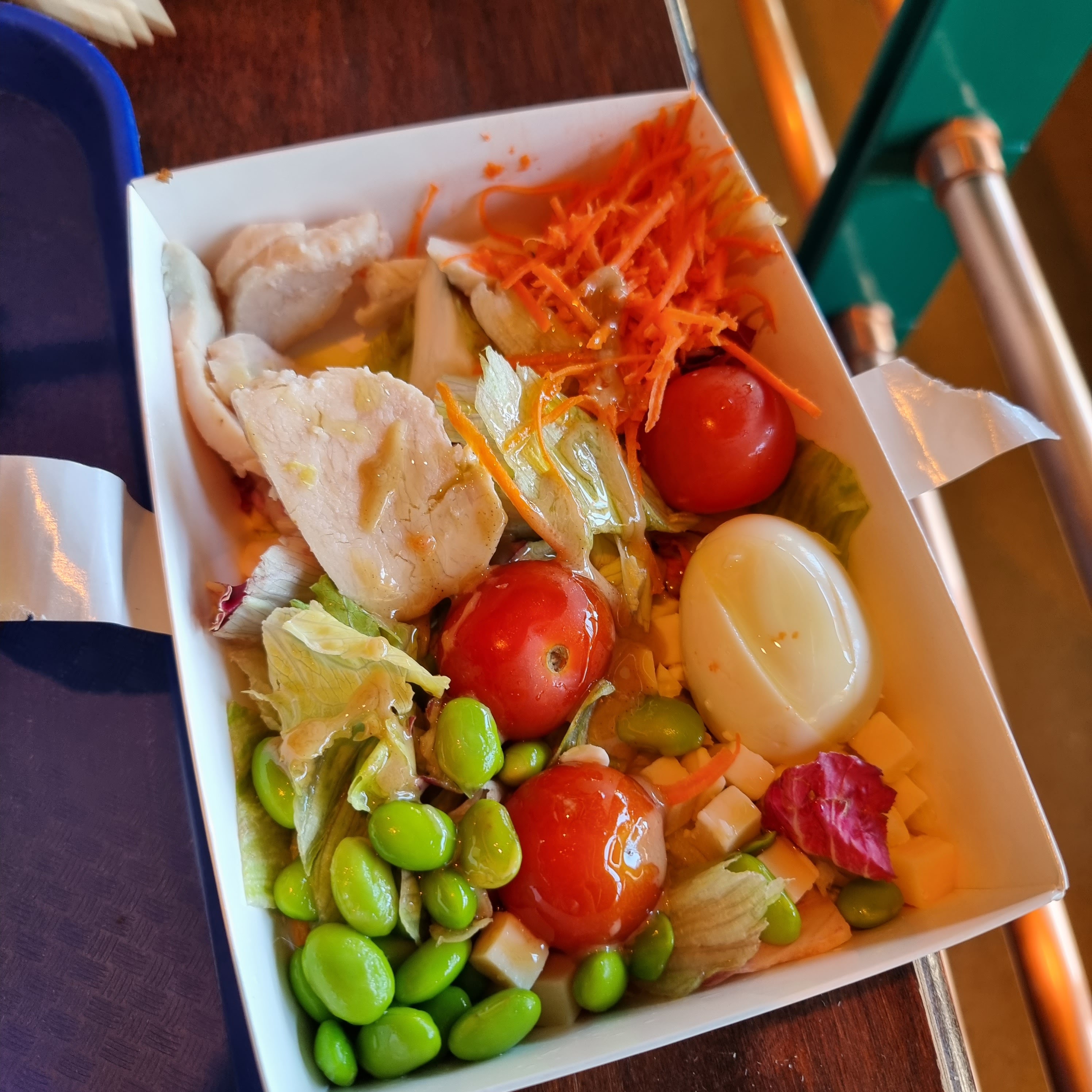 Repas très correct, le burger au poulet contient du vrai filet et non du poulet reconstitué c’est une vraie surprise pour le prix des menus! Par contre l’accueil du personnel qui nous fait scanner le Qr code a l’entrée, est vraiment à revoir! Je suis tombée sur une dame avec un tablier de cuisine, très désagréable qui n’a pas voulu me laisser entrer sans faire la demi heure de queue, alors que je voulais simplement faire réchauffer l’assiette de mon bébé qui pleurait…