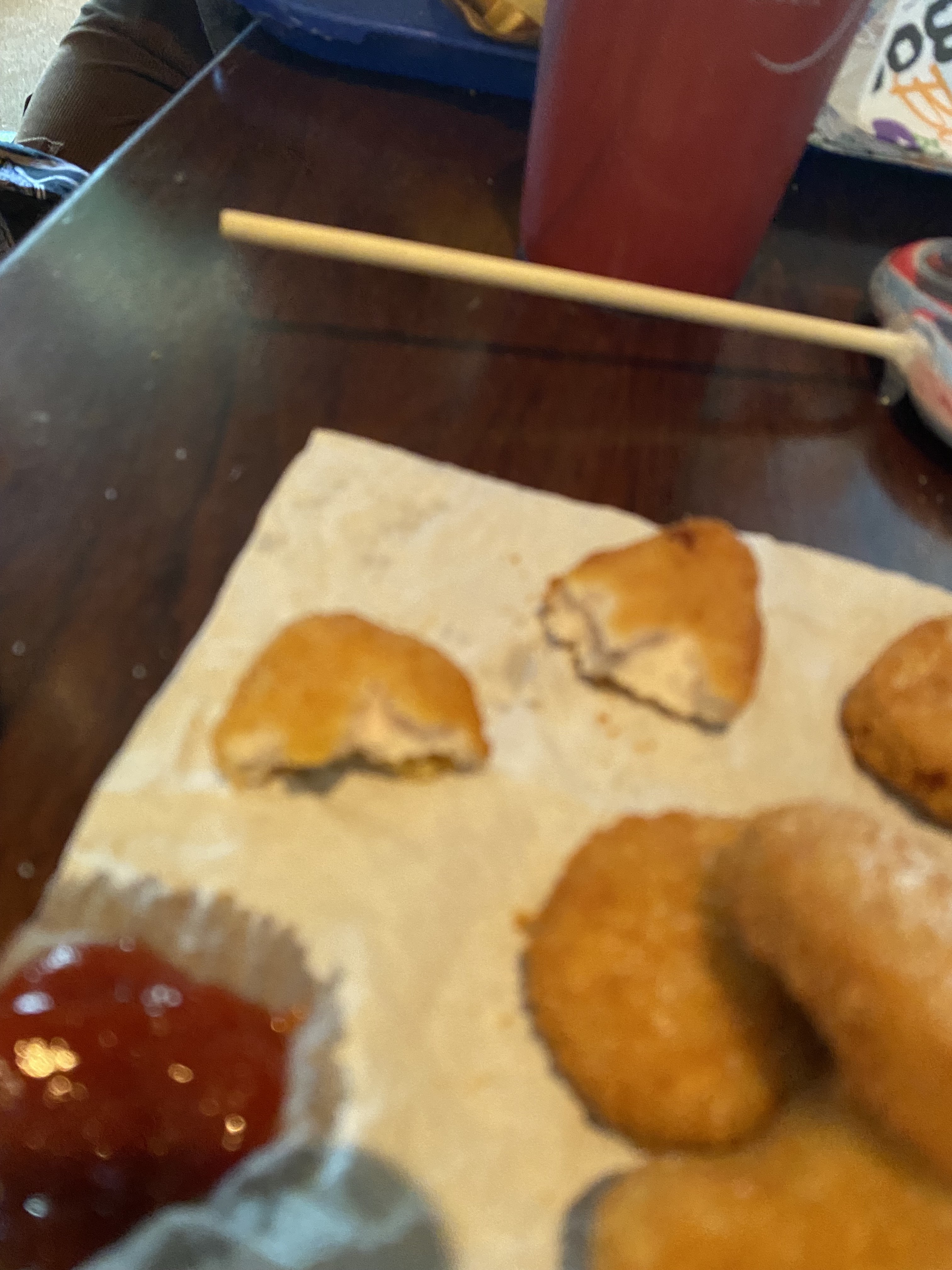 Les nuggets de poulet sont tellement bons ! Par contre les chips étaient froides. Assez cher pour ce genre de qualité