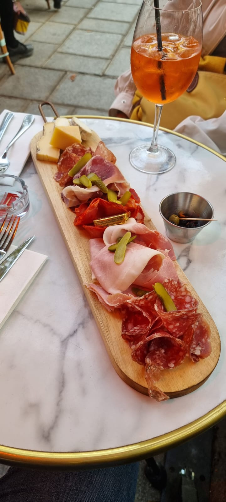 Un excellent endroit pour aller prendre un verre, les serveurs très aimables et rapides. Assortiment de fromage et charcuterie copieux et varié. En revanche nous sommes moins convaincus par les plats à la carte, un peu moins qualitatifs, tant en ingrédients comme en fraîcheur, spécifiquement la salade, la soupe à l’oignon et une pasta.