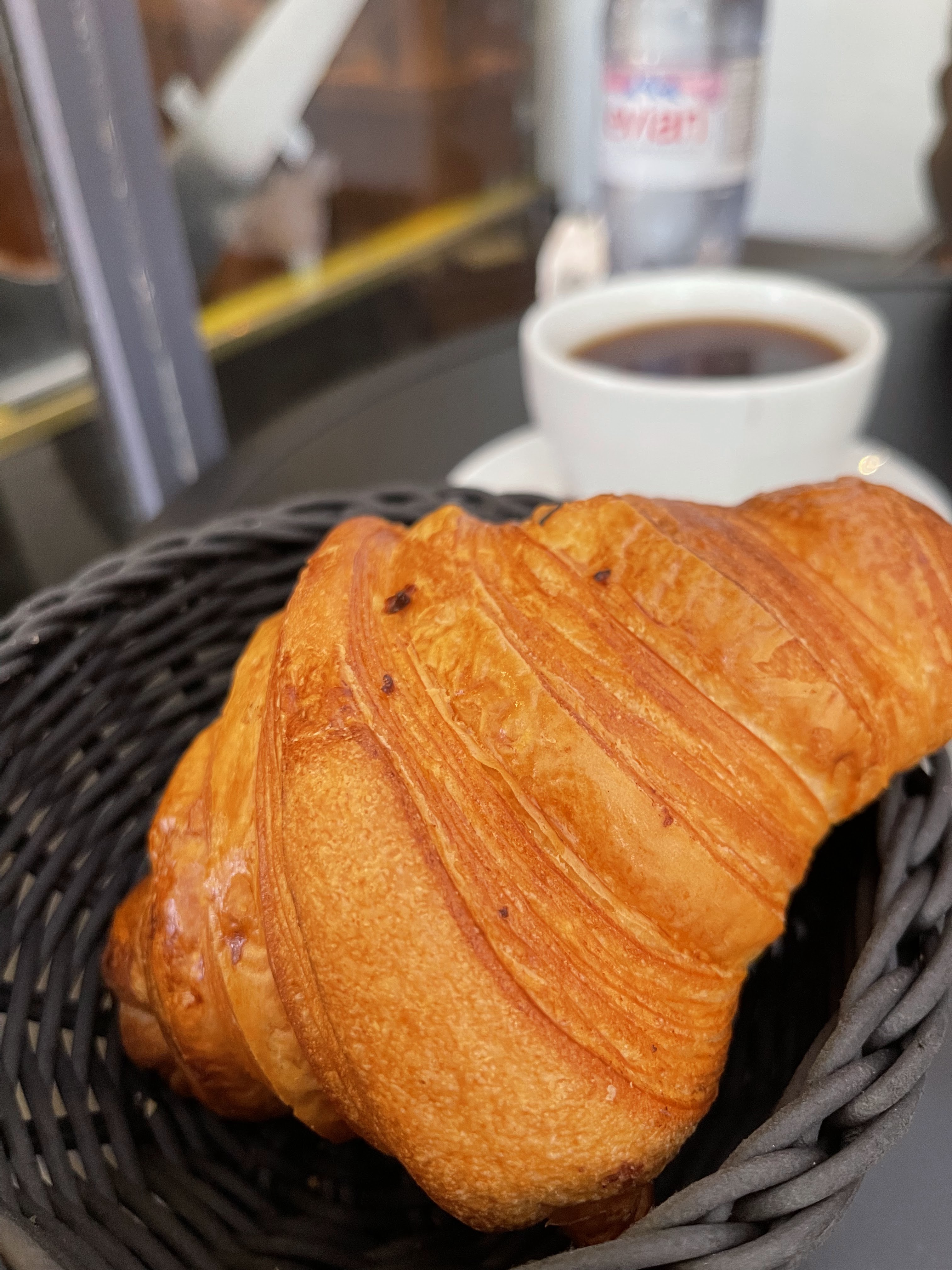 Leur café noir est léger à mon goût. Le croissant n'était pas terrible. La part de gâteau et le Rocher coco sont les meilleurs.