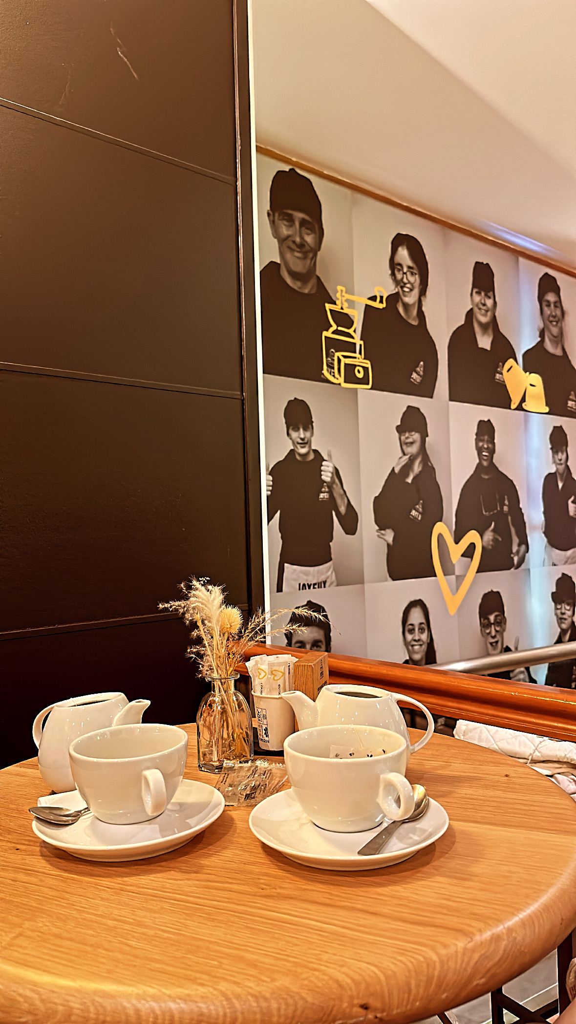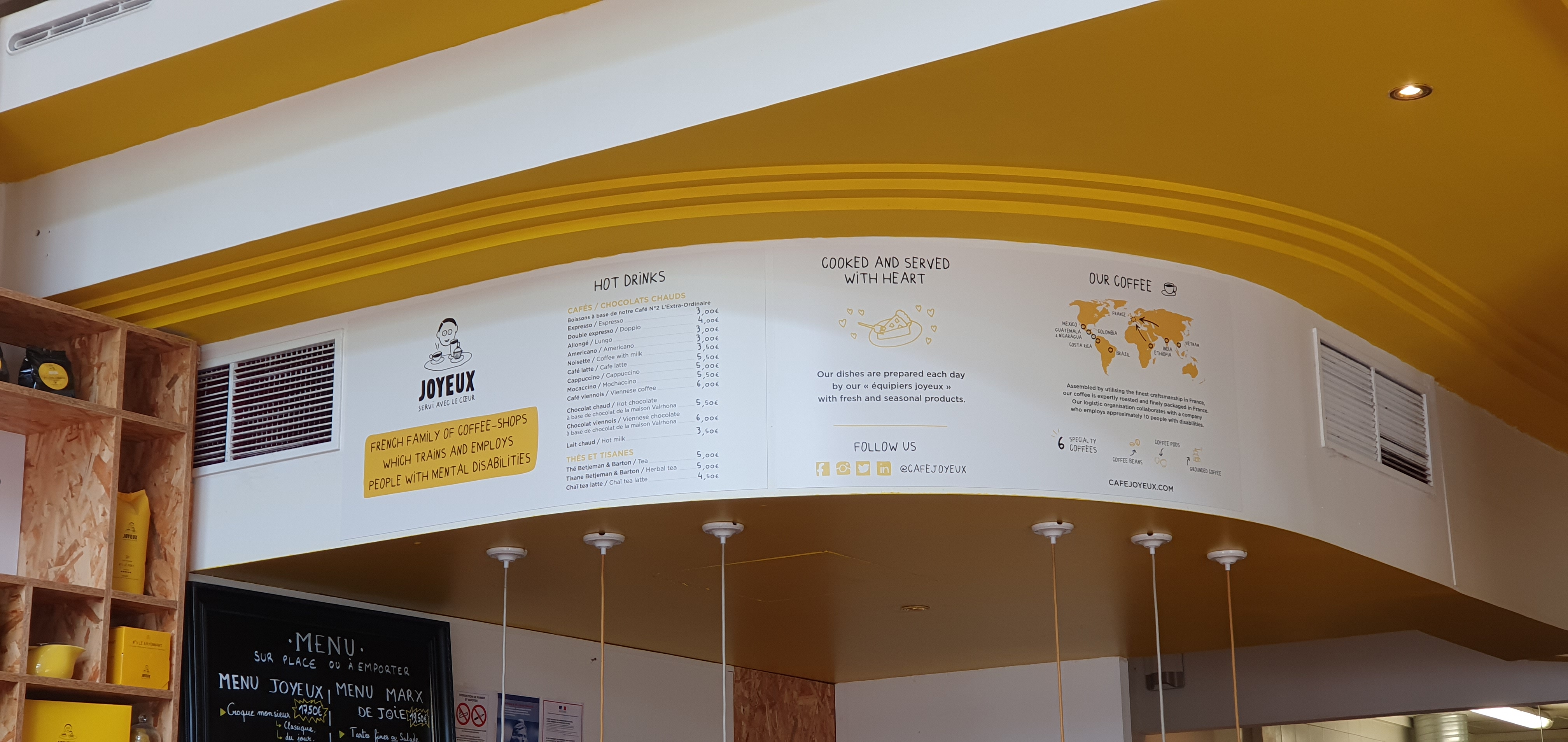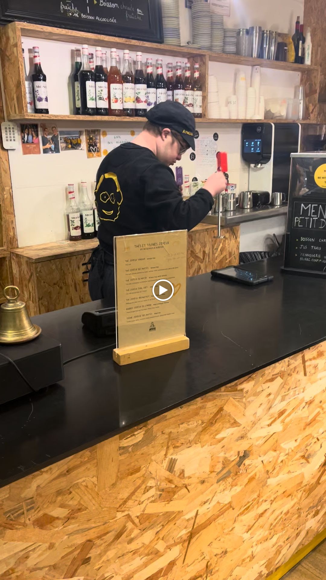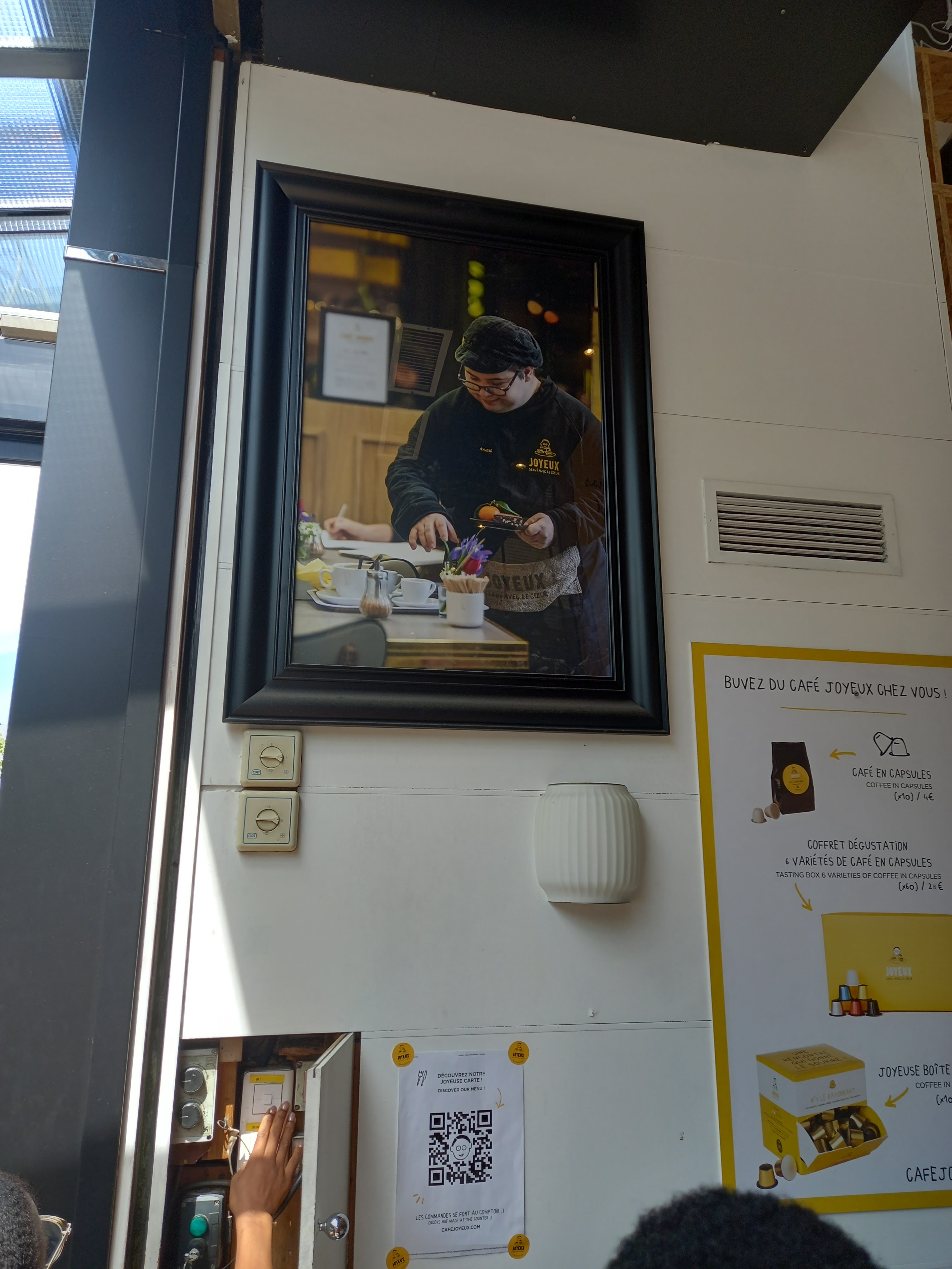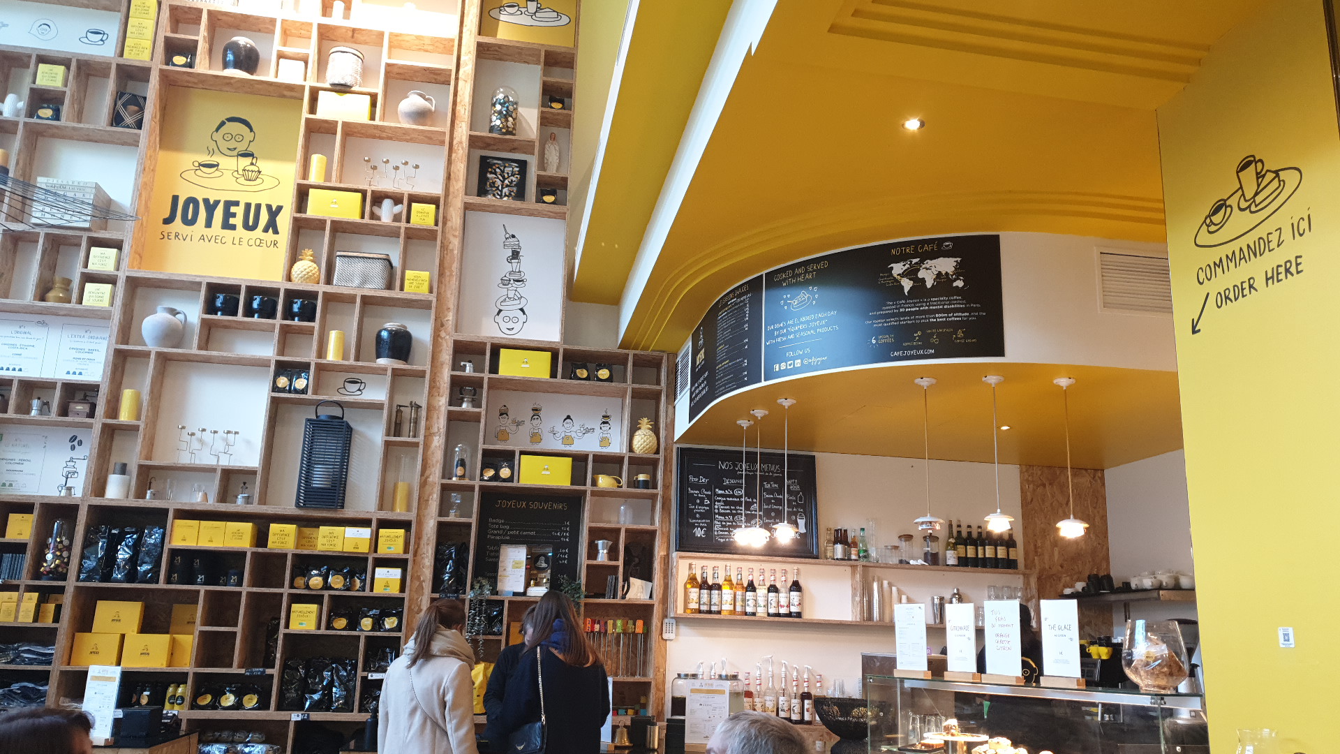 Toujours plaisant de passer dans un Café Joyeux même si celui ci est bondé. Pour ceux qui ne le savaient pas. Les employés sont en situation d'handicap. C'est le concept du café. Pouvoir boire un bon café et aider à l'insertion de ces personnes. Même si pour certains c'est pas grand chose. C'est une preuve que le monde peut s'adapter aux difficultés de chacun et non toujours l'inverse.