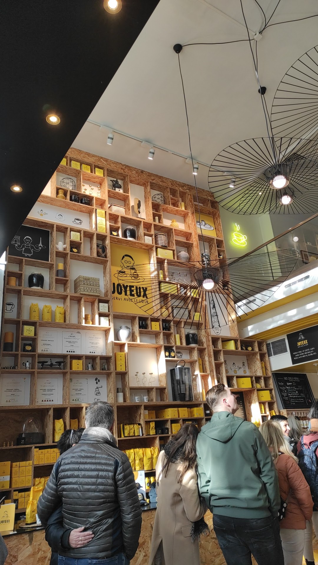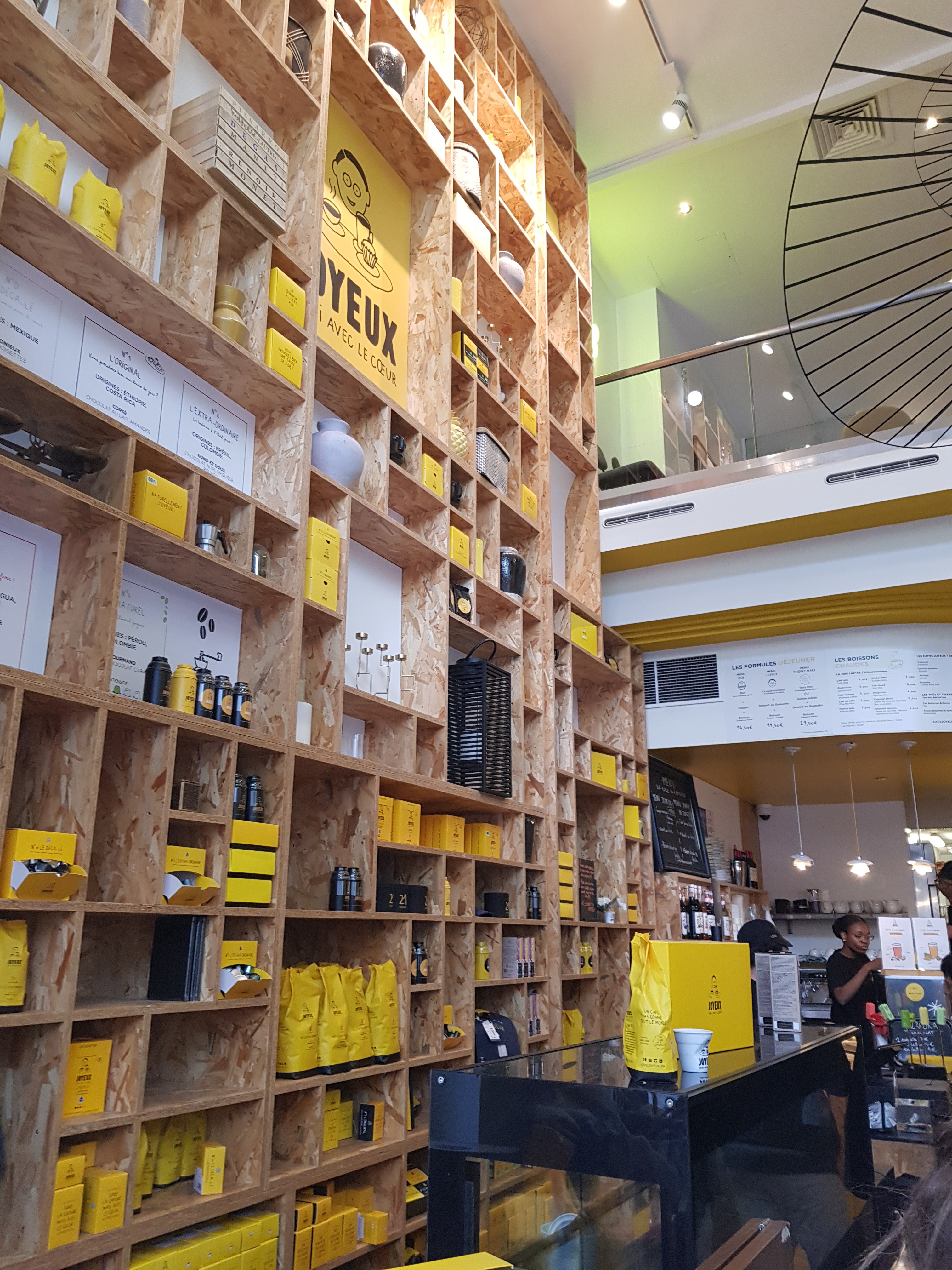 Un endroit imcomparable et surtout différents, ou les cafés sont vraiment tous différents, servis différemment car Café Joyeux c'est cultiver la différence et surtout servir avec le sourire et j'ai passé un vrai moment rempli de richesse humaine. Merci aux équipiers pour les délicieux brownies, cookies et les tartes fines aubergines Mozza ou buns et toutes les recettes élaborées par de grands chef comme Thierry Marx. Hummmm, vivement les futures ouvertures partout en France. Merci à Yan Bucaille et ses équipiers.