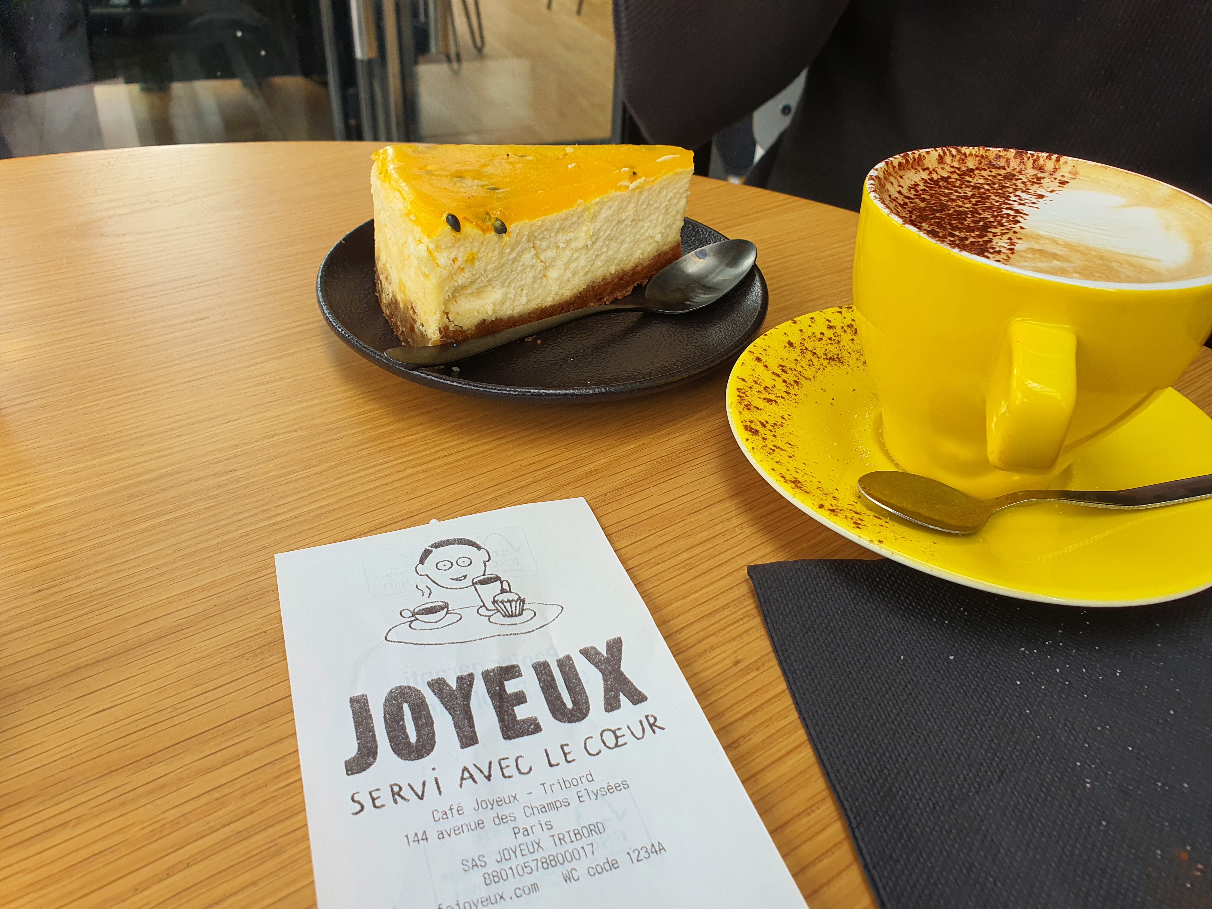 De passage sur les champs en voyant le café joyeux nous nous sommes dit on s'arrête là Nous y avons pris le goûter : boissons chaudes et brownies. Le brownie était délicieux. Les produits sont de très bonnes qualités et le prix vraiment corrects alors qu'on est à 2 pas de l'arc de triomphe. Service rapide et agréable 👌👌