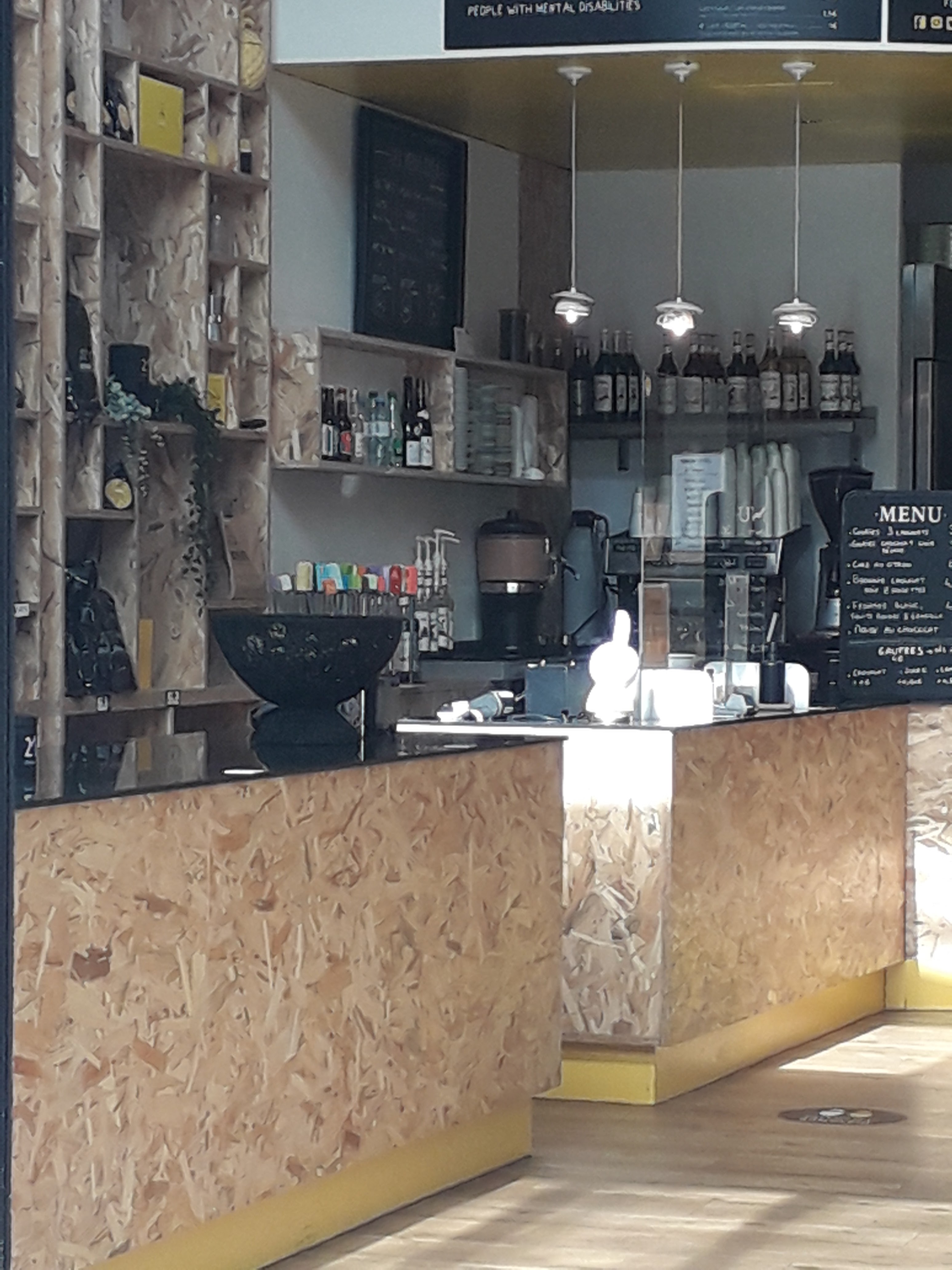 Génial le concept 👏🏻 Savoir que des travailleurs avec handicap vous servent et se dire qu’on y contribue ça fait du bien de consommer intelligemment 🙏🏻 Et l endroit est sympa pour le quartier où on en retrouve que très peu de café de ça type donc 5/5 !