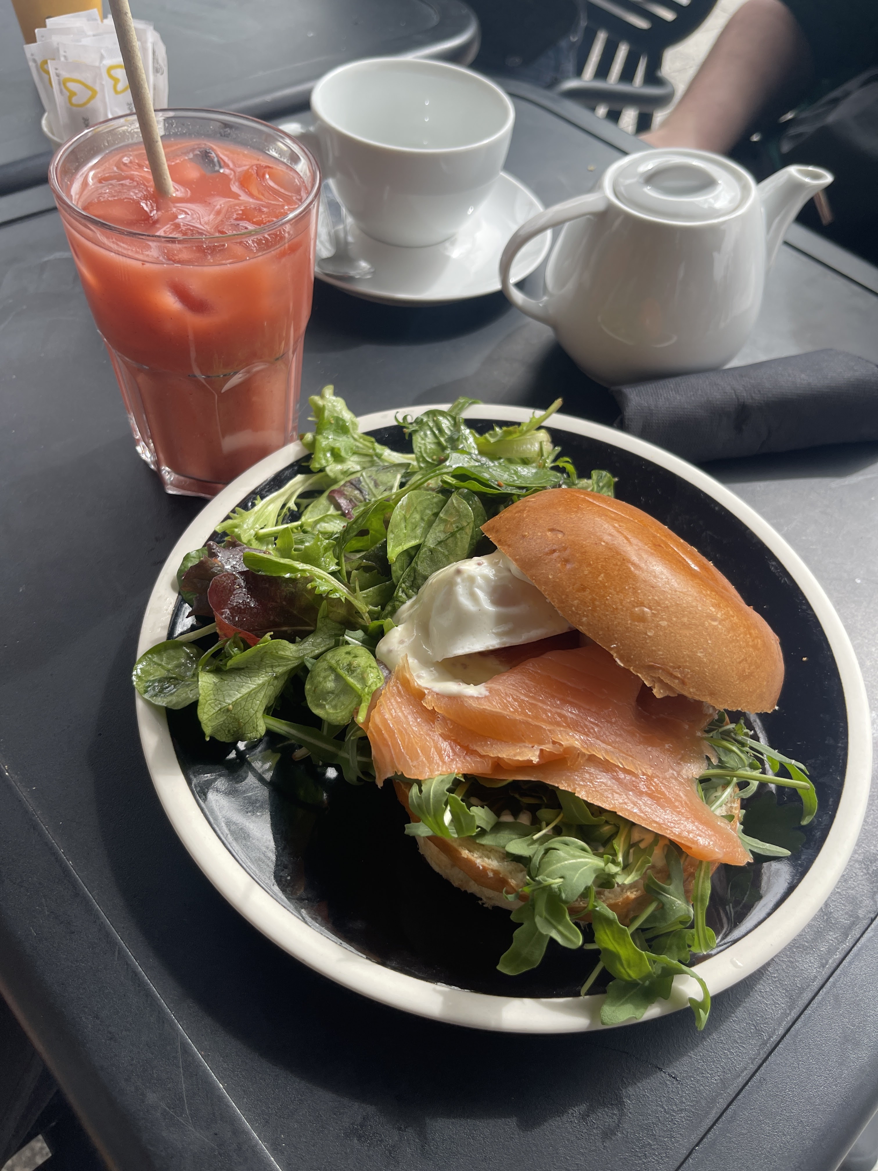 Un joli moment convivial en terrasse autour d un thé glacé rafraîchissant. Merci à Benjamin….notre sympathique serveur.