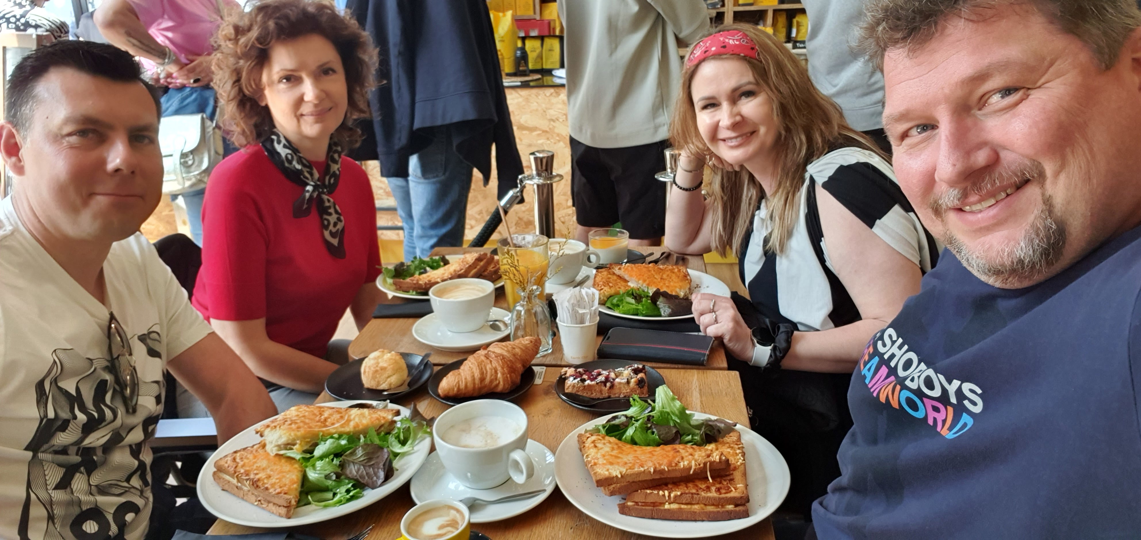 Café qui emploie des personnes handicapées mentales : elles sont bien formées, diligentes, bien élevées et, plus spécial encore, elles semblent joyeuses et apprécient leur travail ; la nourriture est rapide, saine et plutôt délicieuse ; soutien populaire de clients; vend également des souvenirs 🥪☕️🍪Suggestion de bataillon : indiquez plus d'informations sur la façon dont vous les soutenez dans le café, par exemple combien de personnes employez-vous, depuis combien de temps travaillent-ils avec vous, quel type de formation leur fournissez-vous, etc.
