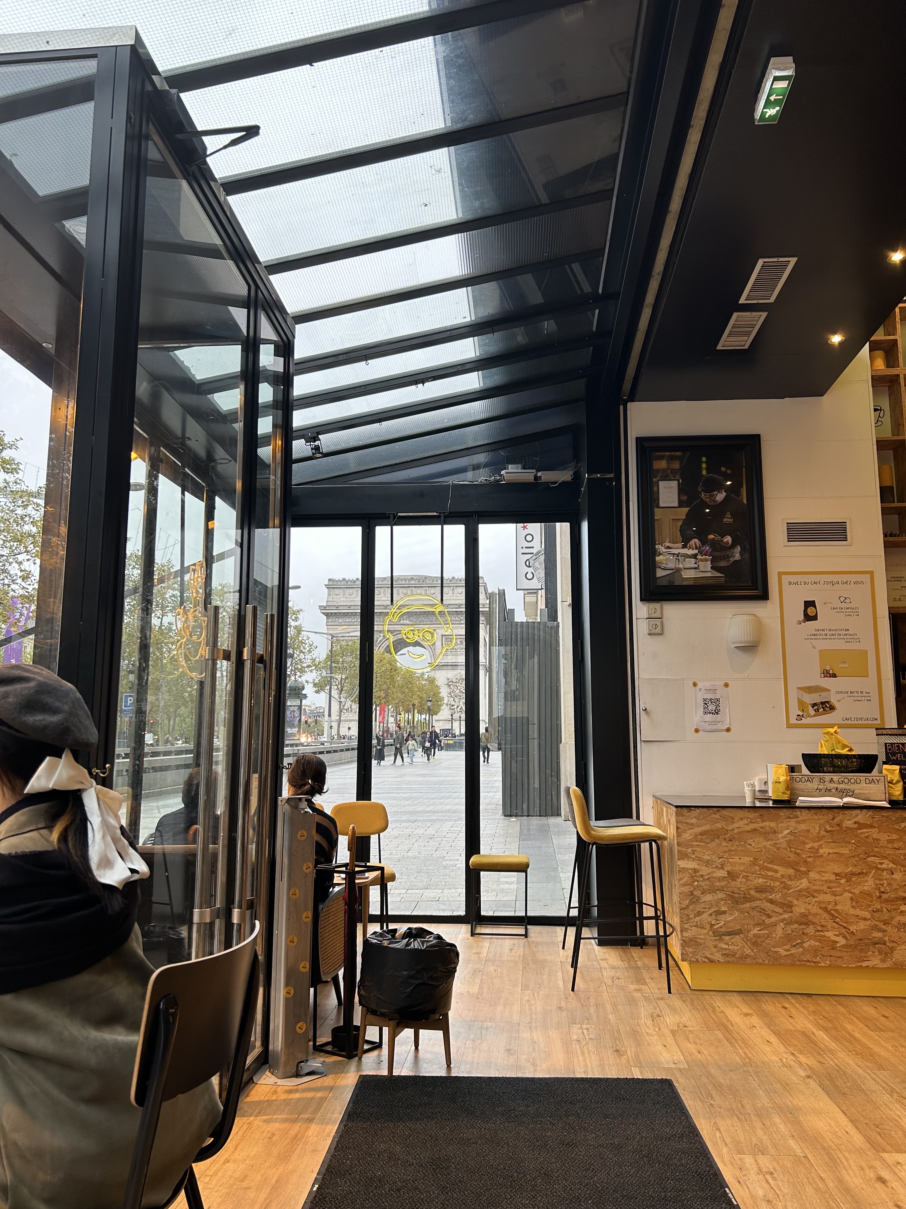 Très bonne expérience ! Personnel adorable, bonne ambiance, vue sur l'arc de triomphe ,café un peu cher mais vu la localisation je comprends.