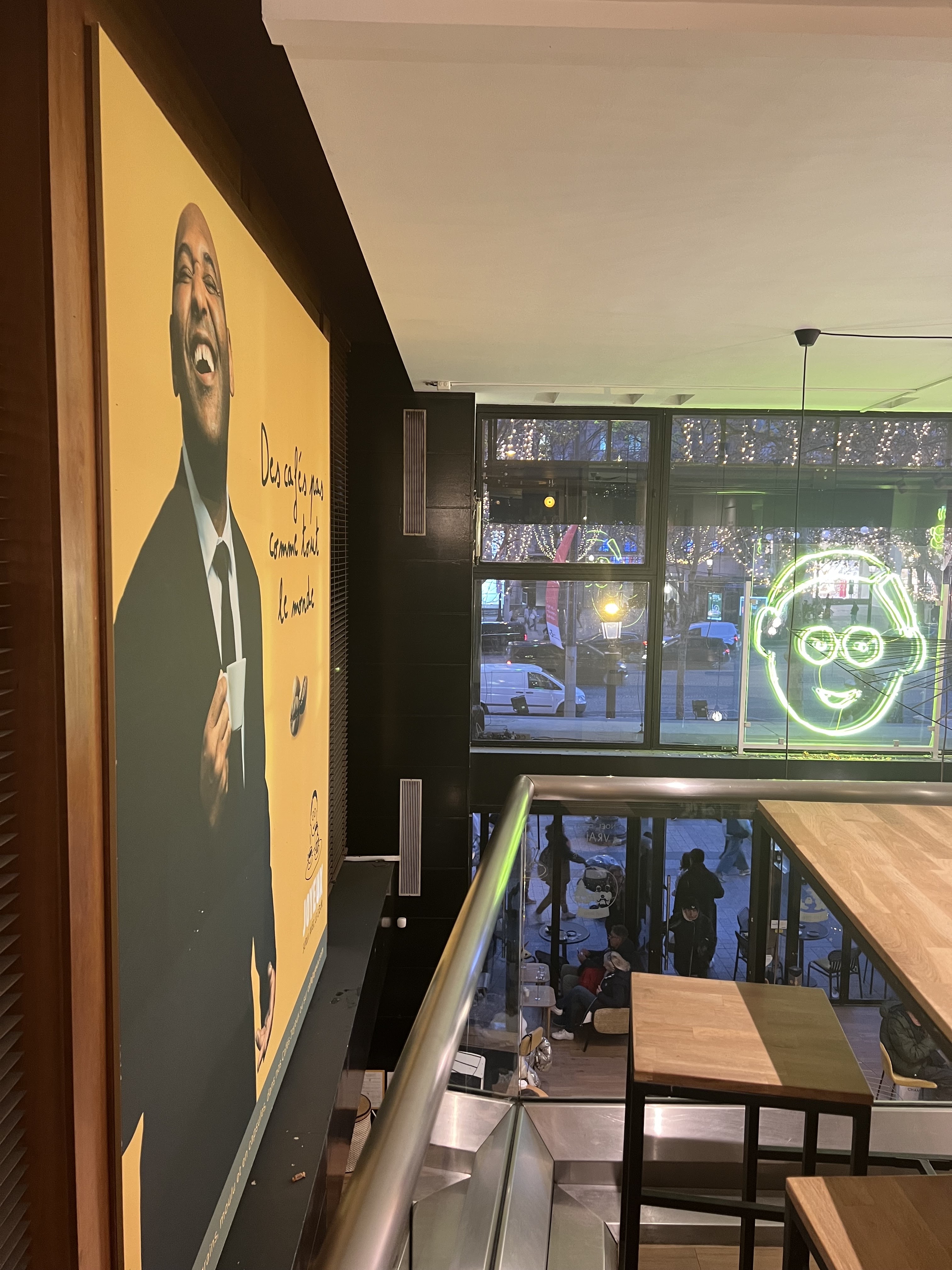 Pour les amateurs de café les plus exigeant passer votre chemin. Je ne regrette pas, car le cadre est vraiment sympa, visuellement ça fait très plaisir, et le café n’est pas mauvais, loin de la. Toujours mieux qu’un starbuck mais malheureusement la confection des boissons n’est pas a la hauteur du cadre. Je veux pas trop râler sur le service car je suis sûr qu’il font de leur mieux… mais ce n’est pas très agréable quand une partie de la boisson est renversée sur la anse, alors que la tasse est loin d’être pleine. J’espère que vous m’en voudrais pas mais je suis assez exigeant en matière de café. Je trouve la moyennes de note peu représentatives. J’étais un poils trop sévère mais les tarifs sont assez corrects vue le positionnement du café.
