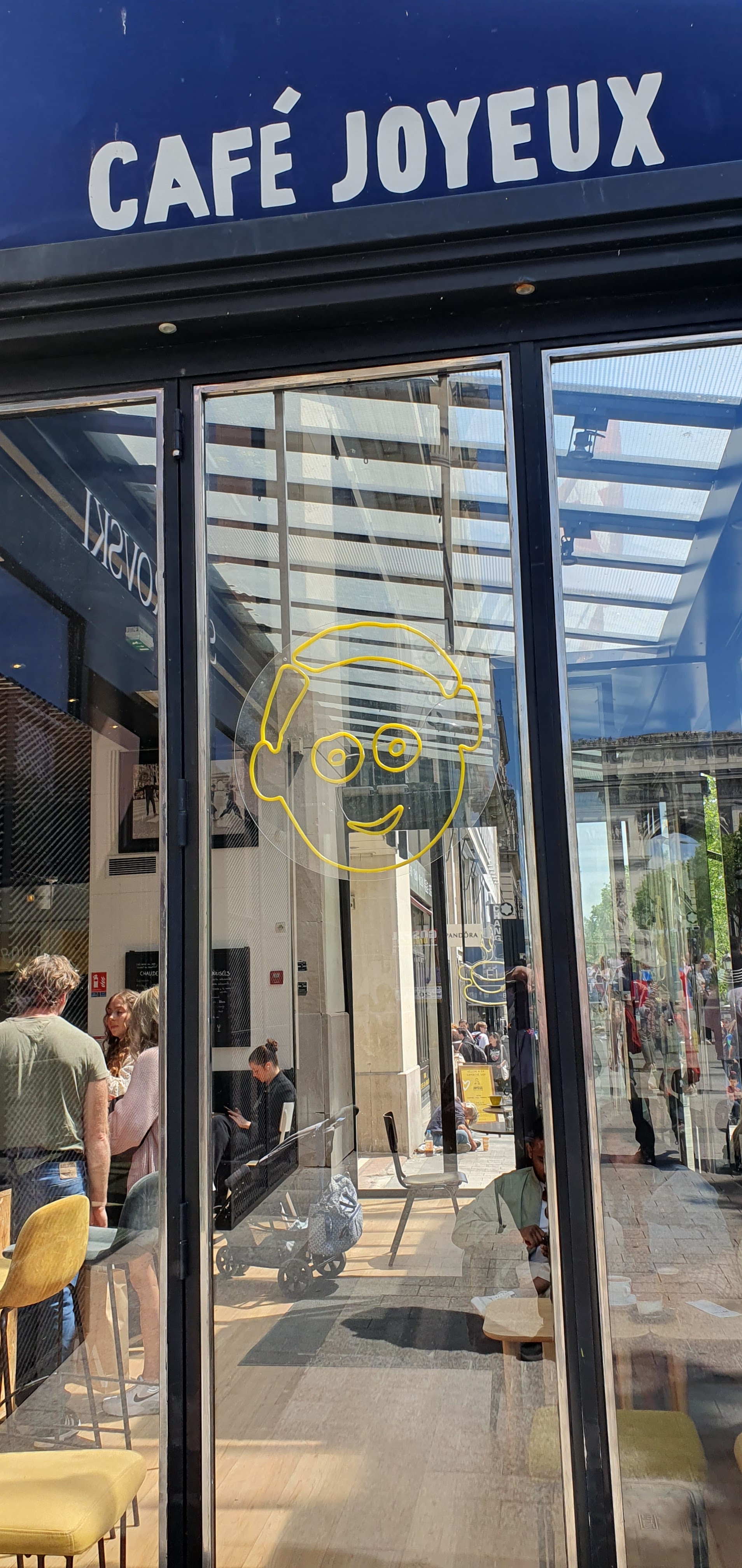 La devise du Café Joueux est nous servons avec cœur et ce cœur se voit et se ressent dès l'entrée. Des couleurs jaunes joyeuses, un espace propre et ensoleillé et un excellent service, qui est le cœur de cet endroit. L'idée de Joyeux est d'intégrer des personnes en situation de handicap qui partagent avec nous le plus délicieux Croque monsieur que j'ai jamais mangé, mais aussi leur sourire et leur joie de vivre ! Plus un délicieux café, des jus de fruits frais, de merveilleux gâteaux ! et une vue sur l'Arc de Triomphe. Que pourrais-tu vouloir de plus?! Nous pouvons également acheter du café en sachets à emporter et emporter des souvenirs avec nous en le préparant à la maison et en nous souvenant de cet endroit fantastique. Je le recommande de tout mon cœur ! Des prix comme pas à Paris ! Merci Café Joyeux pour ces délicieux souvenirs !!!