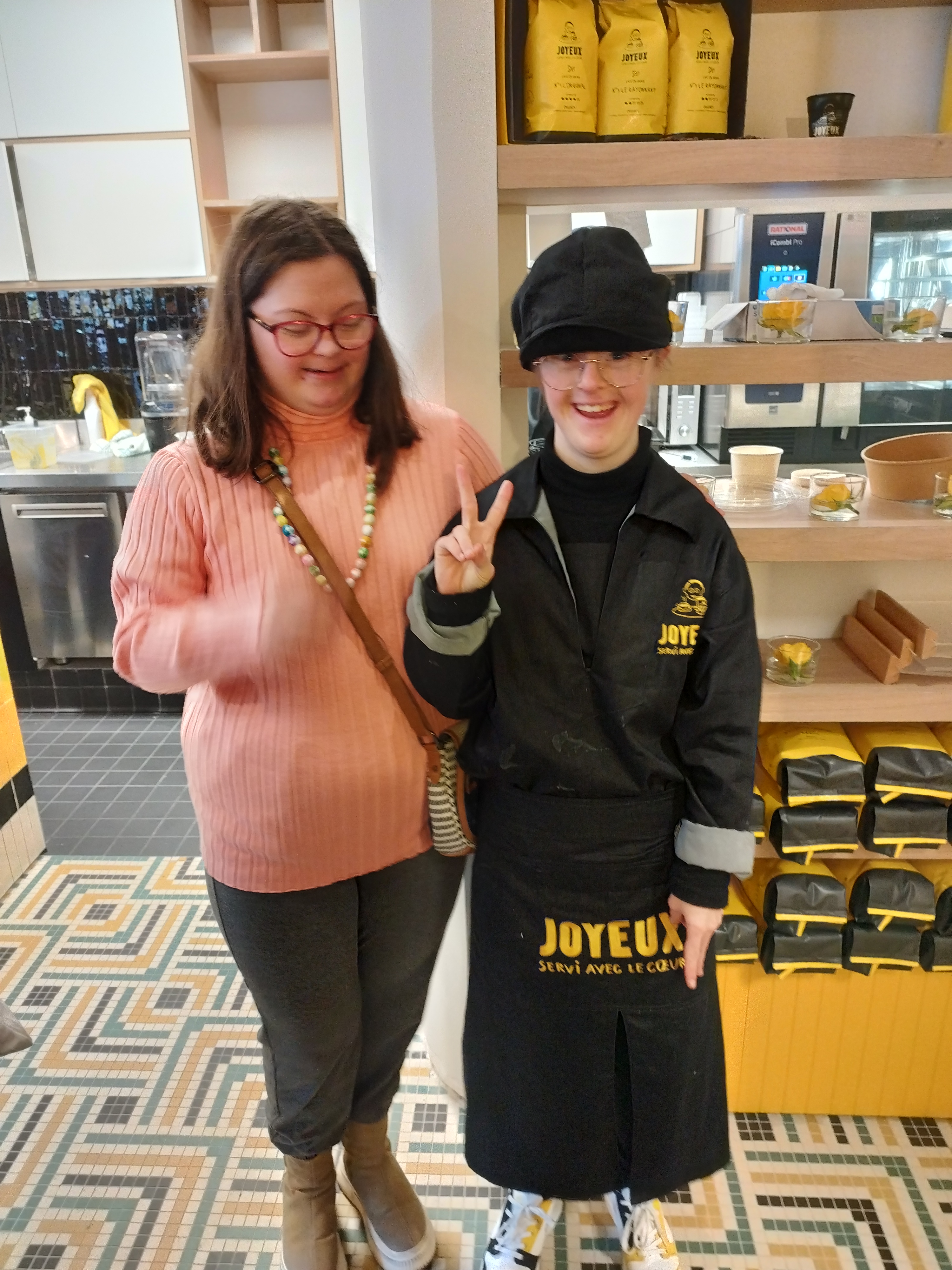 Excellent moment de partage au Café Joyeux où convivialité et tolérance règnent en maître. Très bon menu à 15 € avec quiche ou croque monsieur, dessert et café. N'hésitez surtout pas à déposer un pourboire pour déclencher les applaudissements du personnel ! Bravo pour cette belle initiative d'intégration, joyeux appétit à tous !! 🙂🙂