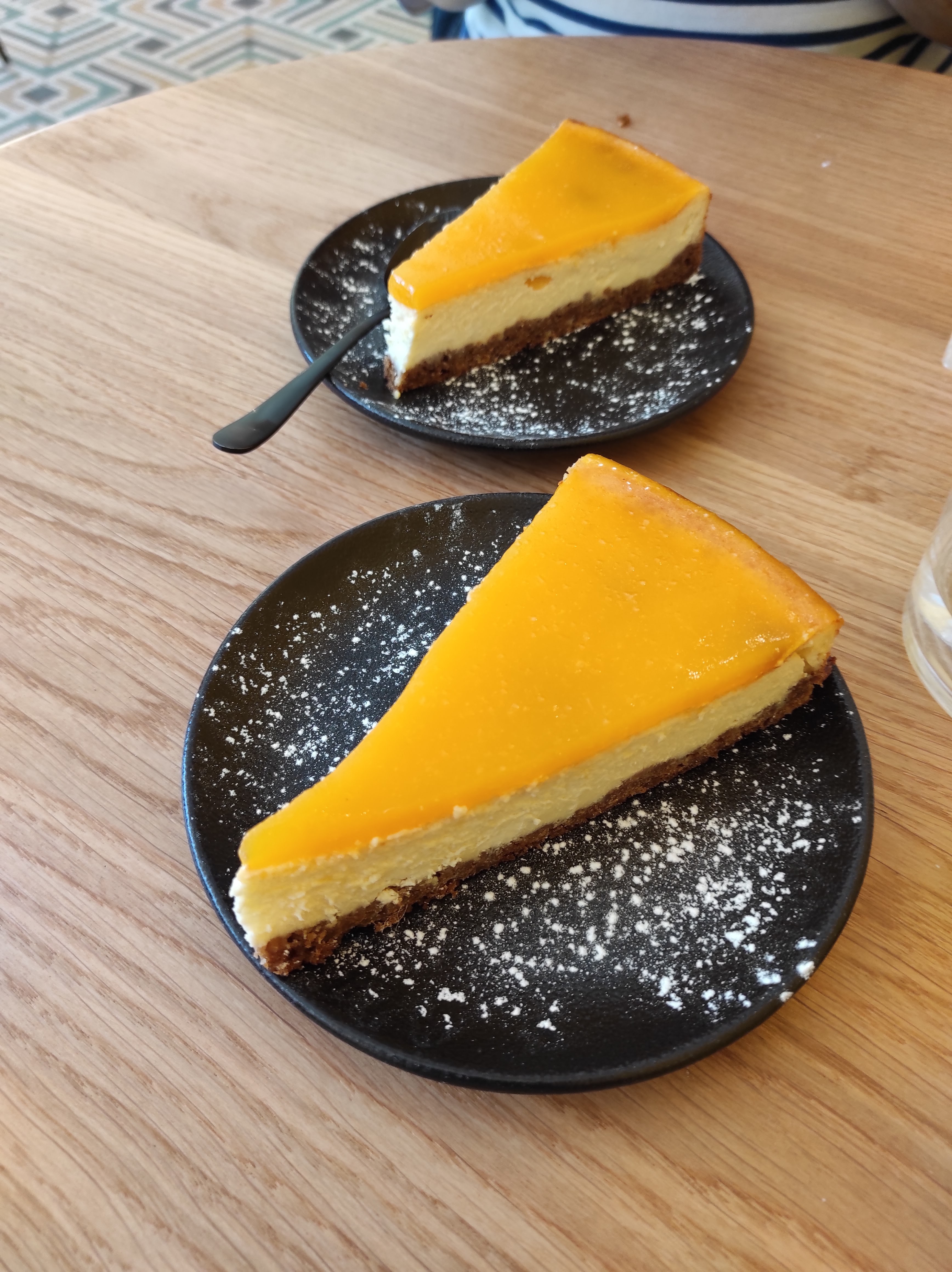 Nous avons pris deux cafés avec un excellent pain au chocolat et une part de cheesecake à la mangue (incroyable) !! C’était une découverte et tout était super avec une super ambiance et de bons produits !!