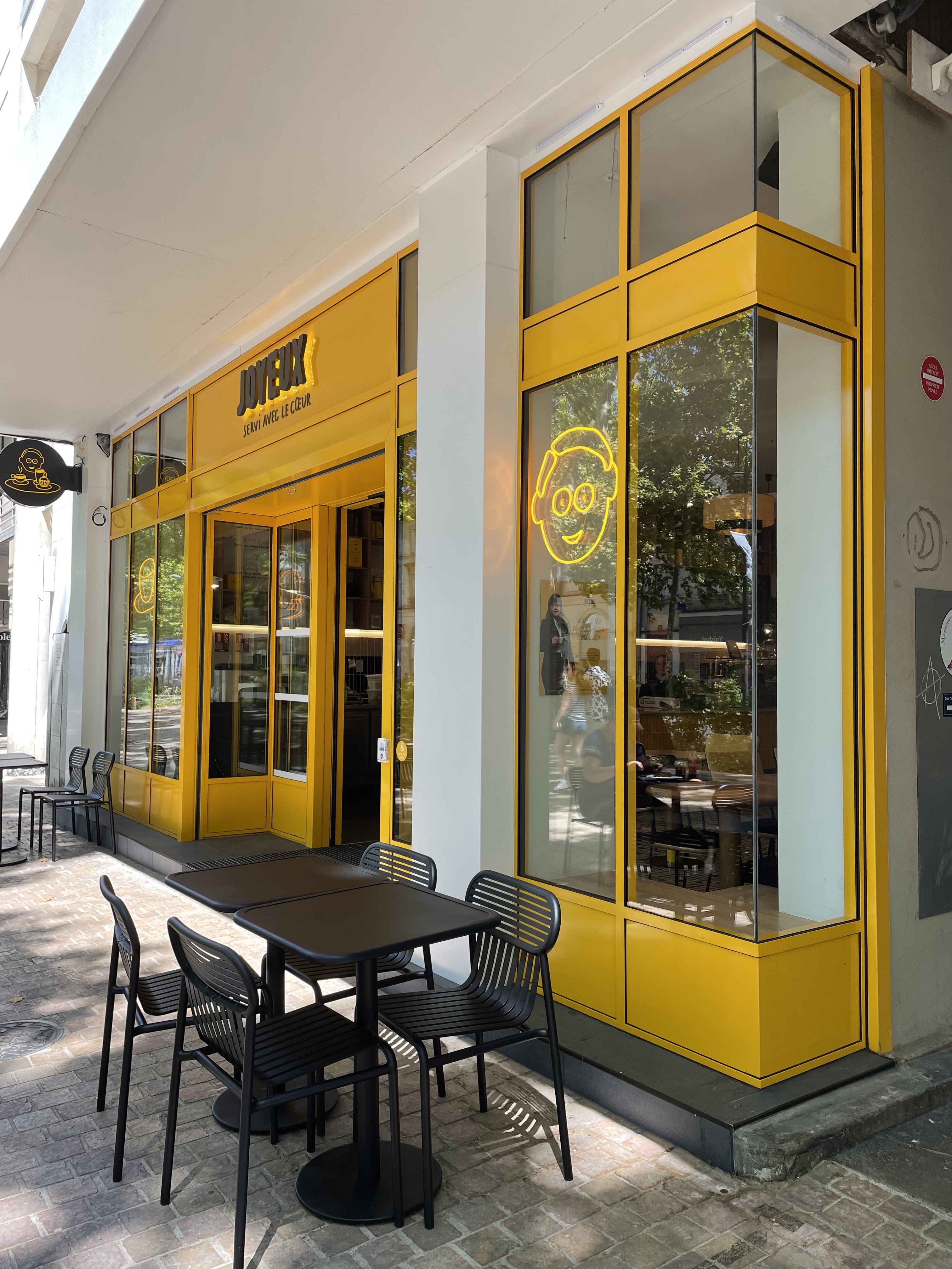 Le café joyeux est une très bonne initiative, les employés sont très gentils, le lieu est agréable (bien que les enseignes soit encore emballées). Passé en journée de forte chaleur, je ne regrette pas, et j'y retournerai !