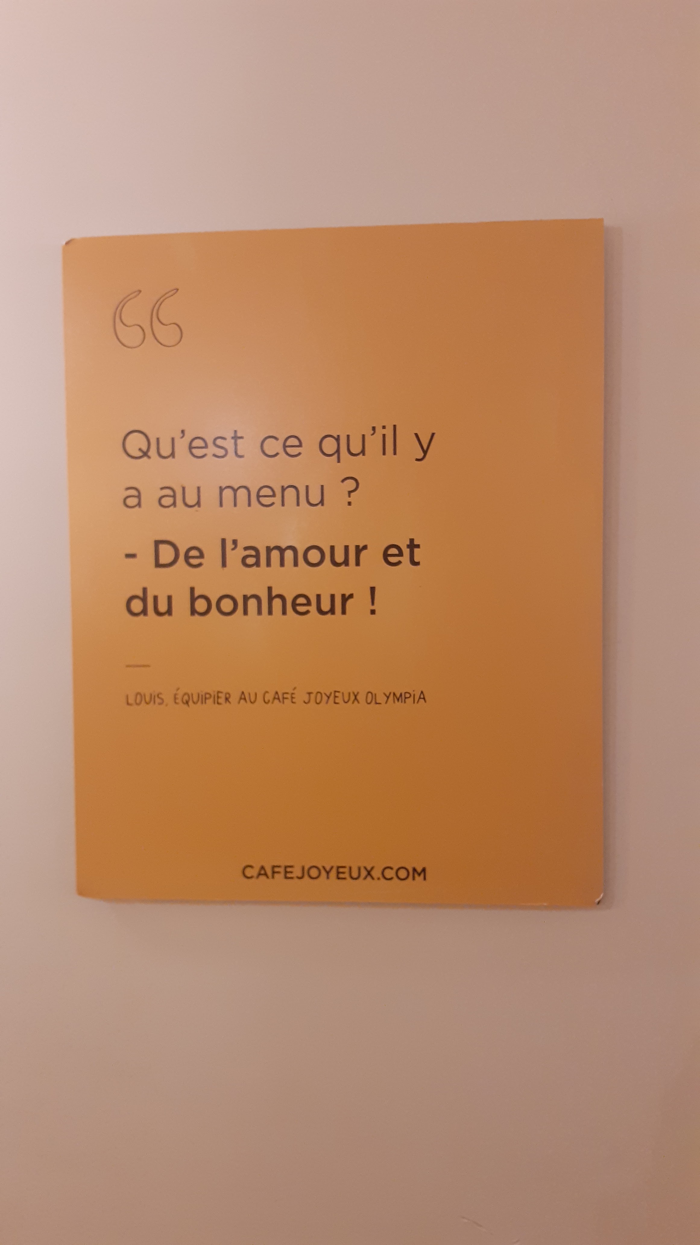 Je me suis régalée, merci pour votre accueil, vos sourires, le Café Joyeux est un bel endroit dans lequel il fait bon déjeuner !