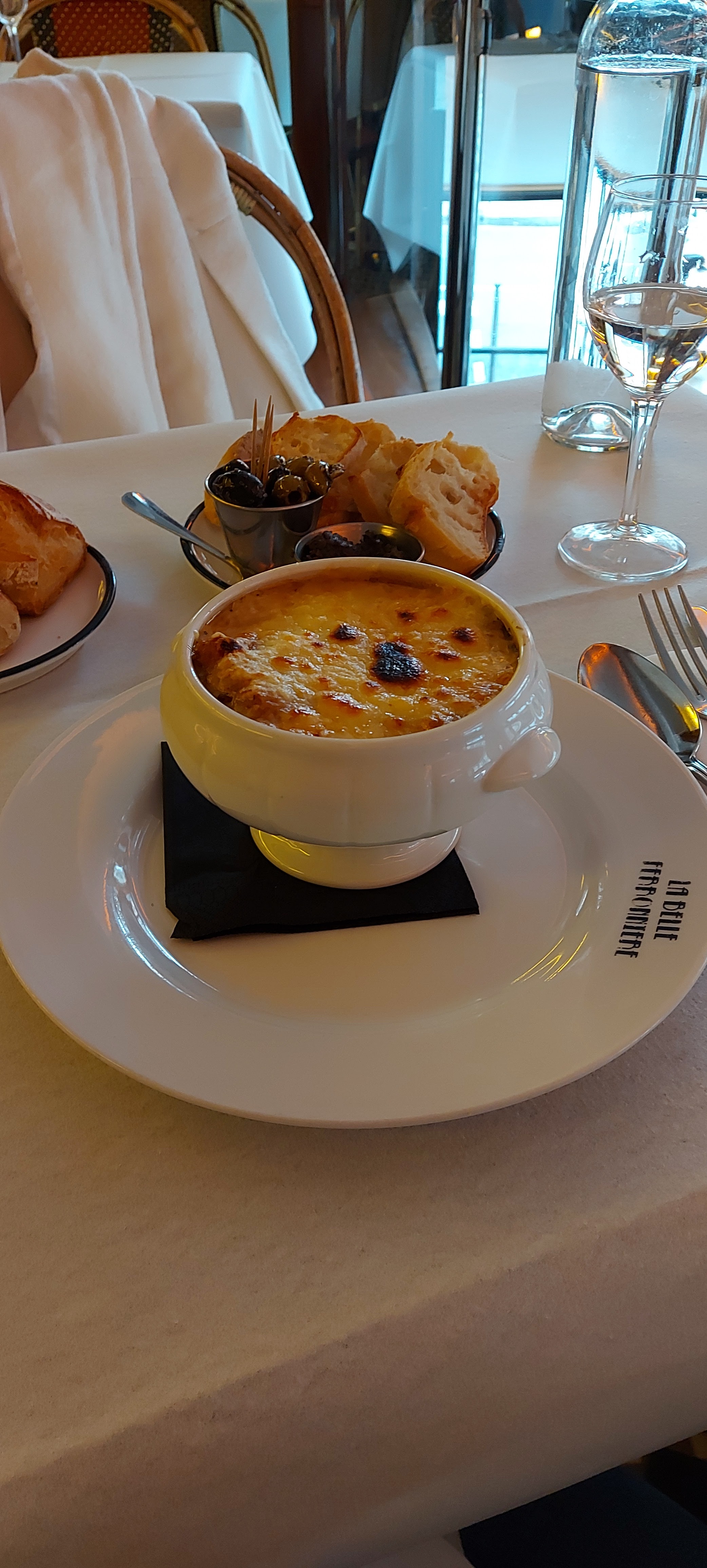 La soupe à l'oignon française est absolument délicieuse avec tout ce fromage fondu dessus et le hamburger était de 10 sur 10. Le service était également inégalé.