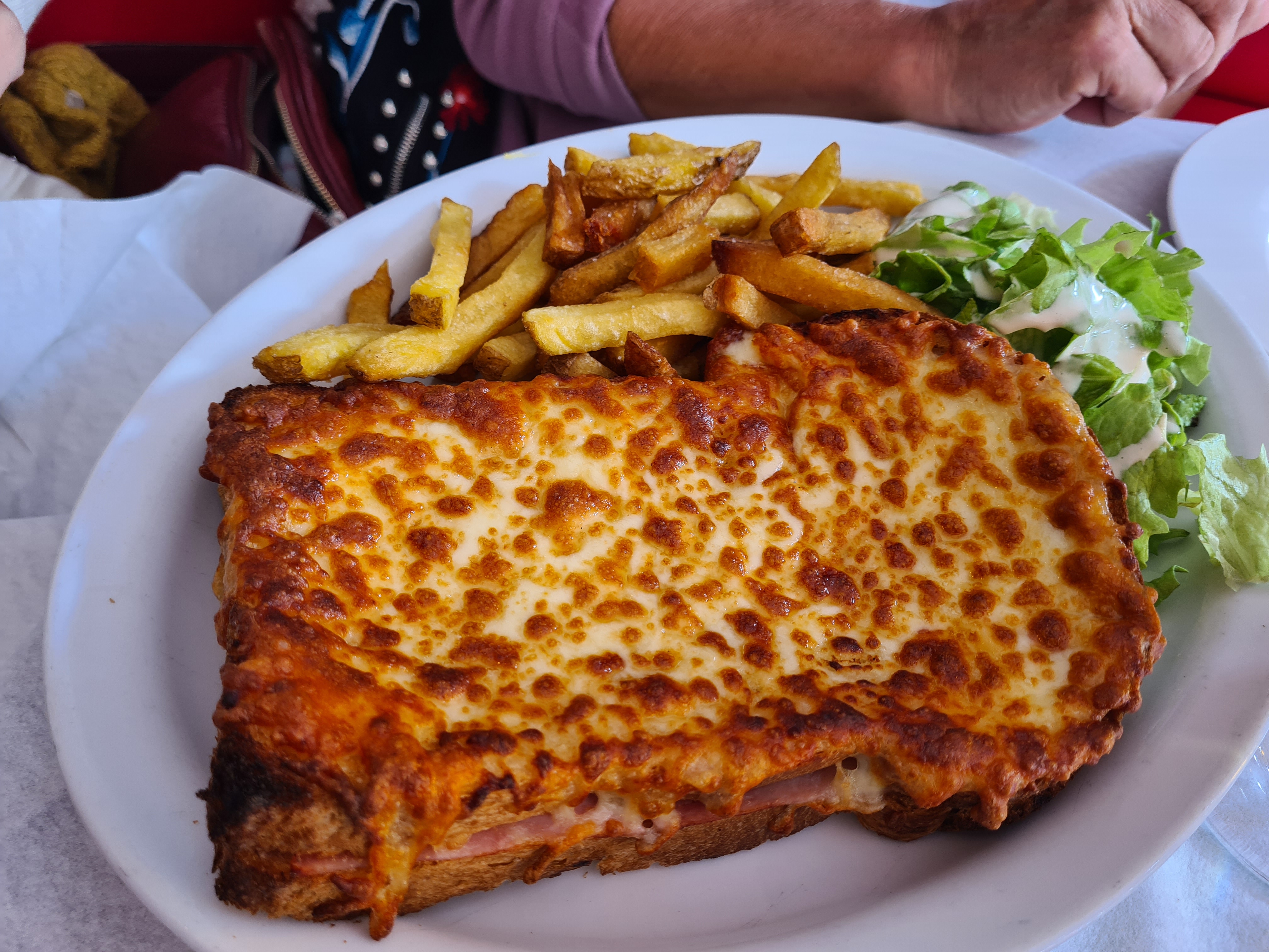 Bon déjeuner, bon service. Nous nous sommes arrêtés pour déjeuner ici avec nos enfants et avons pris un croque Monsieur et un cheeseburger. C'était très agréable.