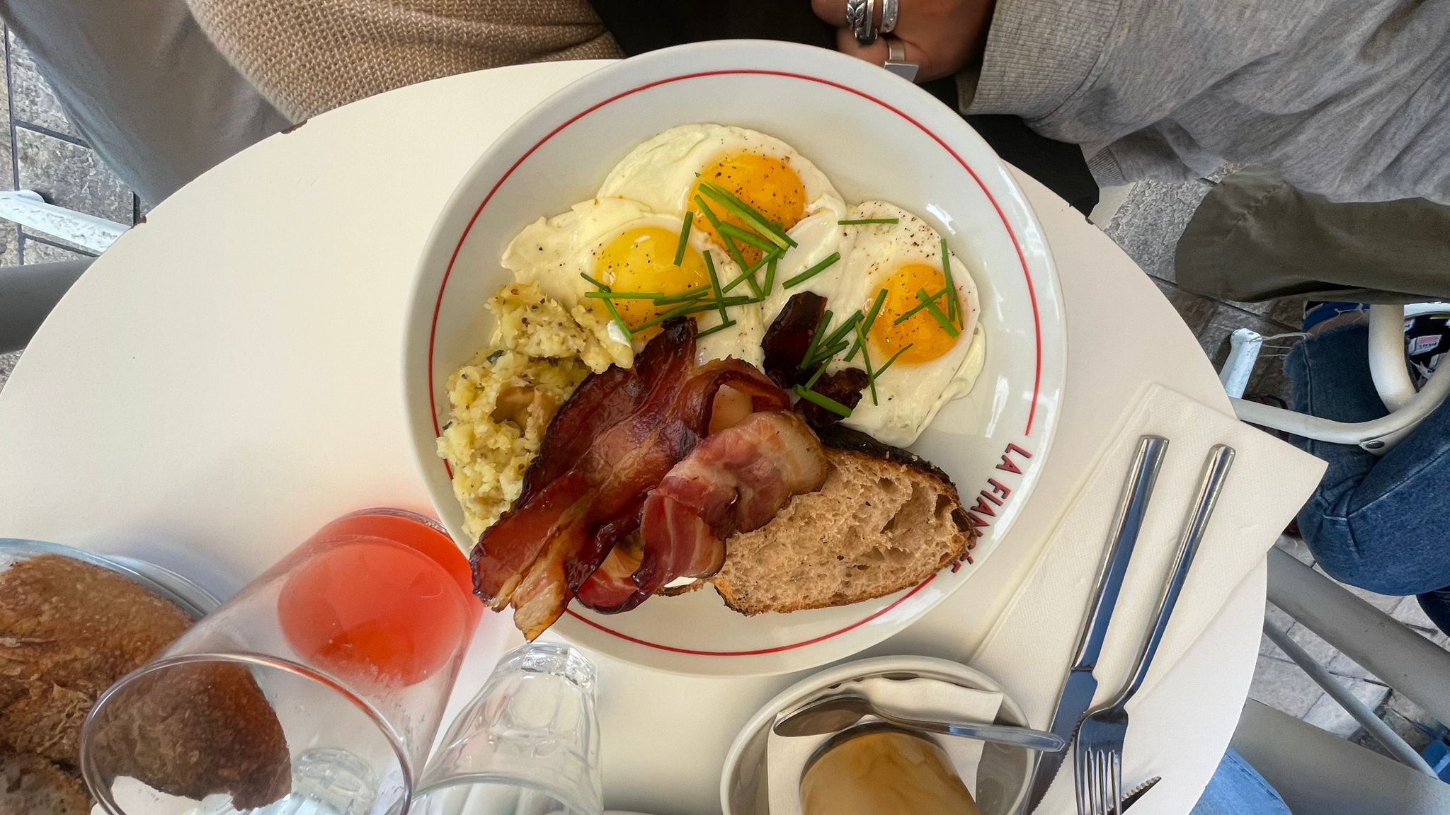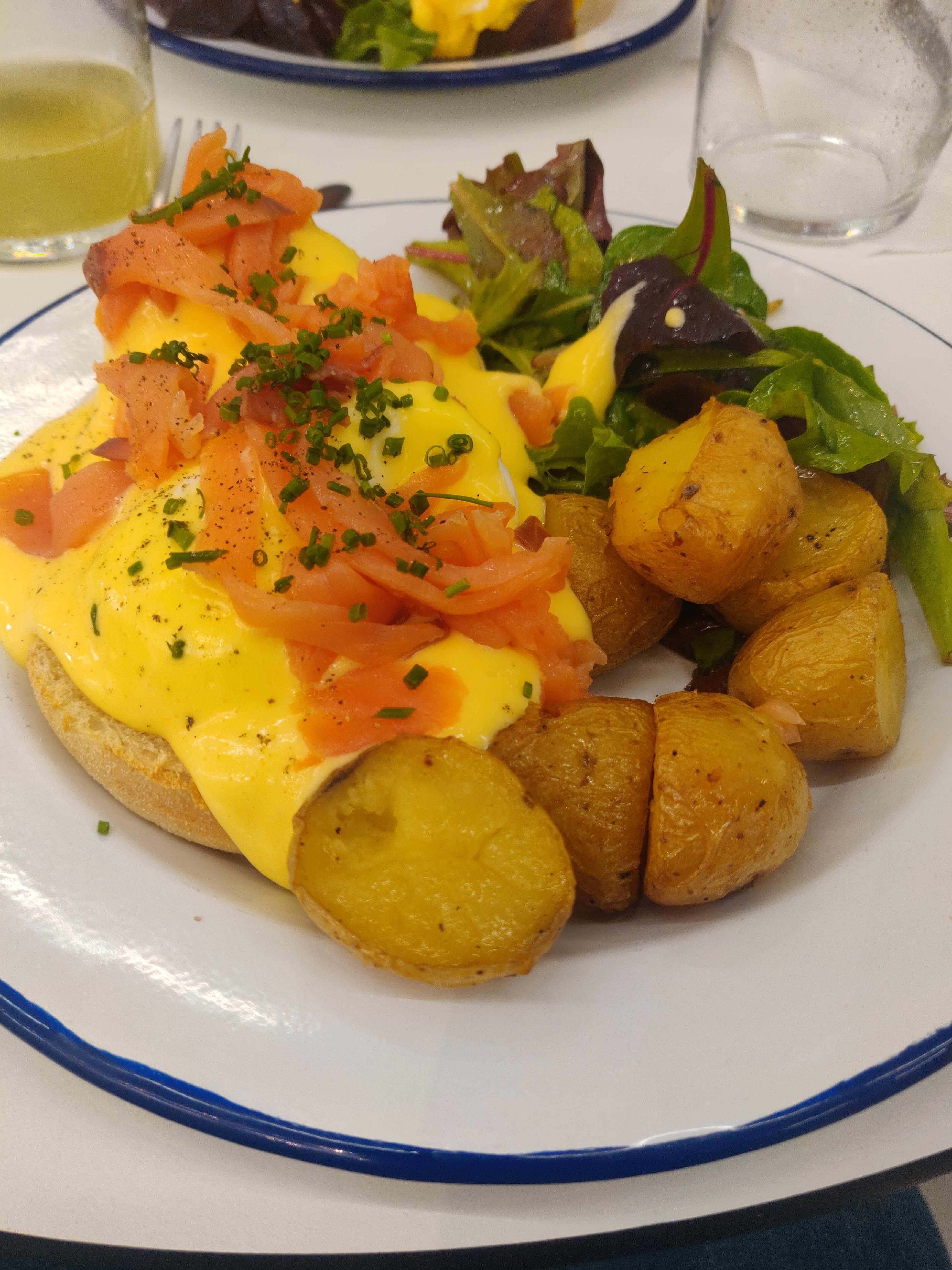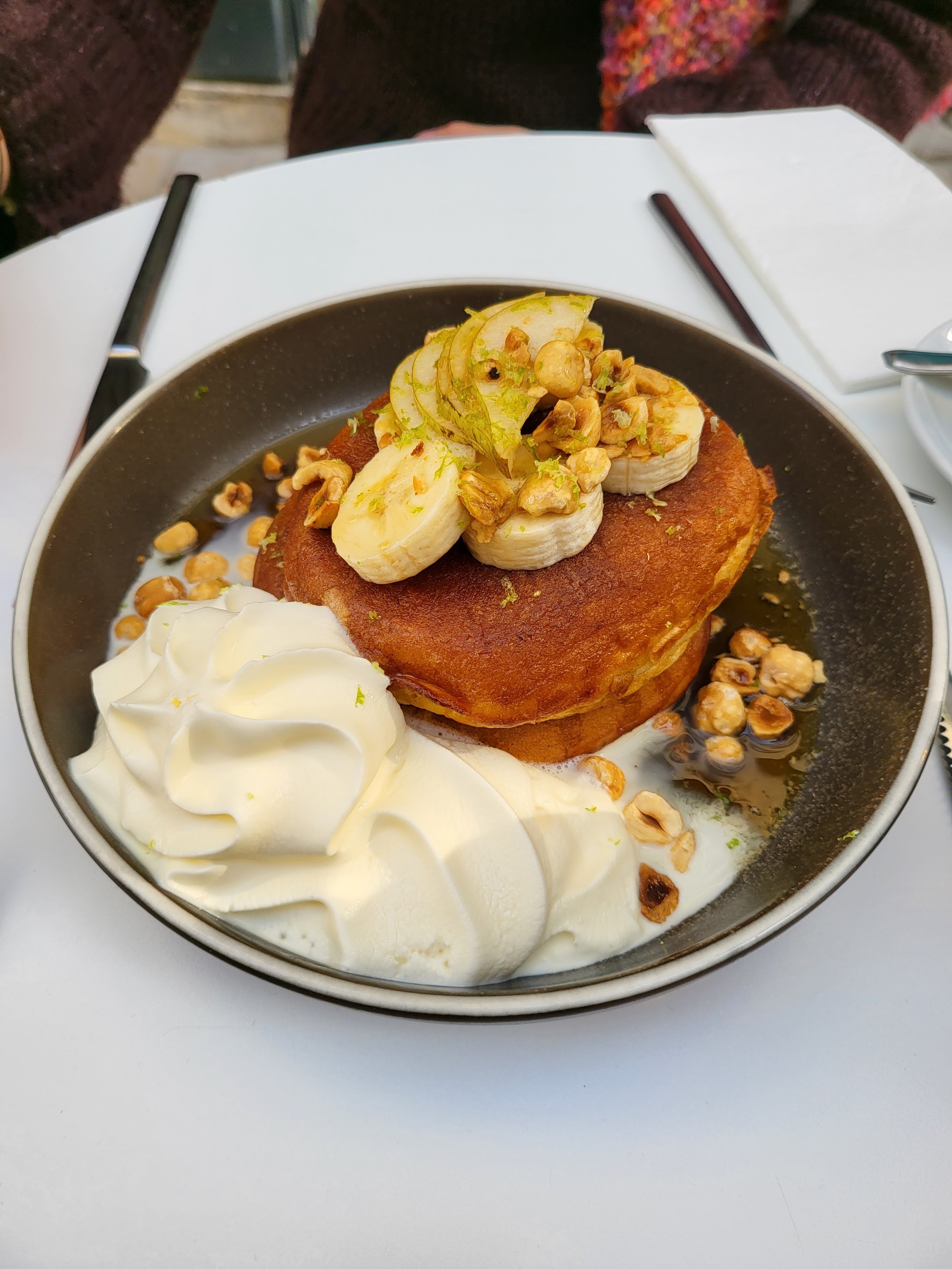 Vraiment excellent. On avait quelques heures pour manger avant de prendre notre train et j'avais comme une envie de brunch : J'ai ouvert maps et j'ai trouvé ce joli restau à 15 mins de la Gare ! J'ai pris des pancakes sales : Bacon oeuf avec supplément parmesan : Le tout avec du sirop d'érable en fond ( faut aimer le sucre / salé). C'était vraiment une tuerie : Pancakes moelleux, consistant et accompagnements de bonnes qualités. Le rapport qualité / prix est bon et le service est impeccable. Adresse a ne pas louper si vous êtes de passage