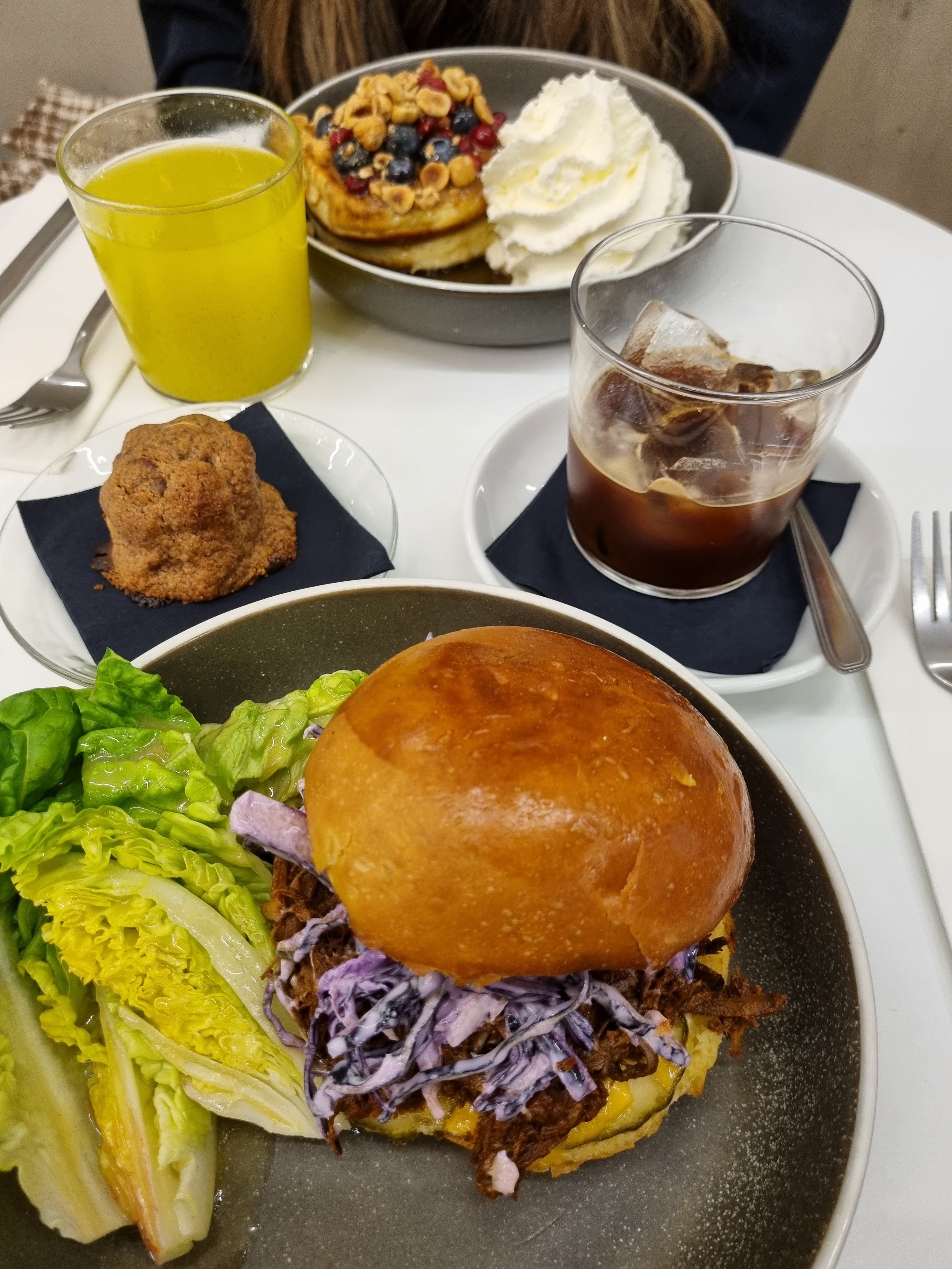Le restaurant était plein à midi, toutefois le service a été rapide. On s’est régalé avec le choix de nos plats! Un Avocado toast au saumon avec des inspirations asiatiques, et un burger bun avec effiloché de bœuf… Un lieu très sympathique pour un brunch de qualité et original, avec un service à la hauteur!