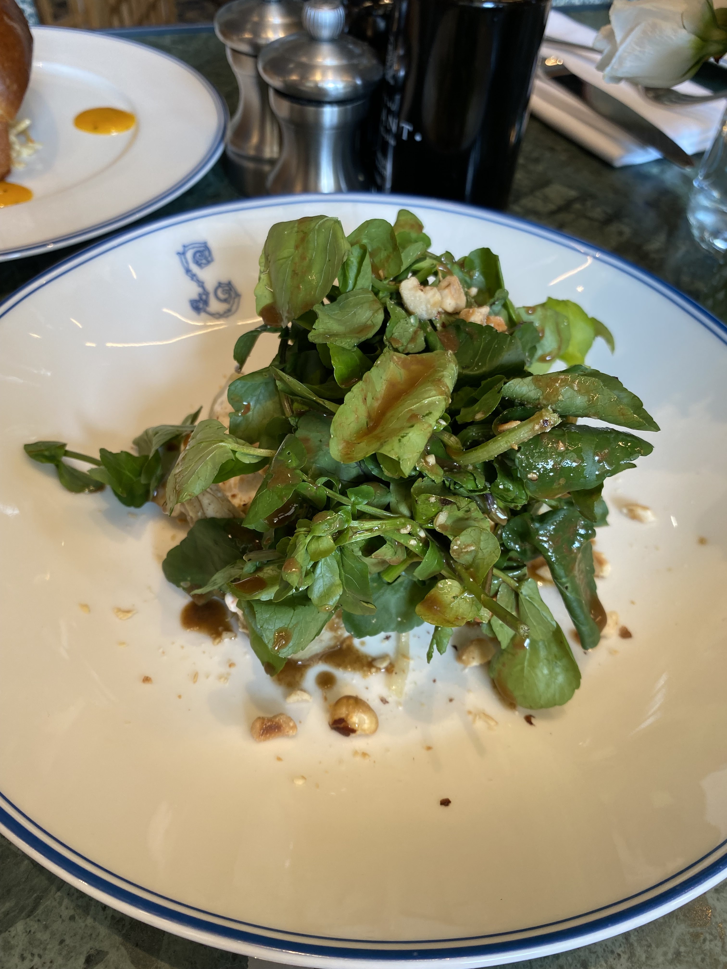 Endroit superbe dans le récemment rénové hôtel de la Marine. Service en rodage, mais notre hôtesse était très pro. On ressent l’ouverture anticipée sur une base pas encore finalisée. Salade de légumes crus/cuits que l’on ne recommande pas : aucune valeur ajoutée et impossible à grignoter. En revanche, très belle salade d’épinards à la truffe et carpaccio du Finistère parfait ! Main un peu lourde sur le sel peut être, mais ça se pardonne. Macaroni au crabe très bien, lobster roll correct. Beaucoup de mets pas encore disponibles alors qu’ils sont inscrits à la carte. On pardonne tout tant le lieu est incontournable et on comprend le rodage en cette période particulière. En espérant que le niveau sera vite rattrapé !