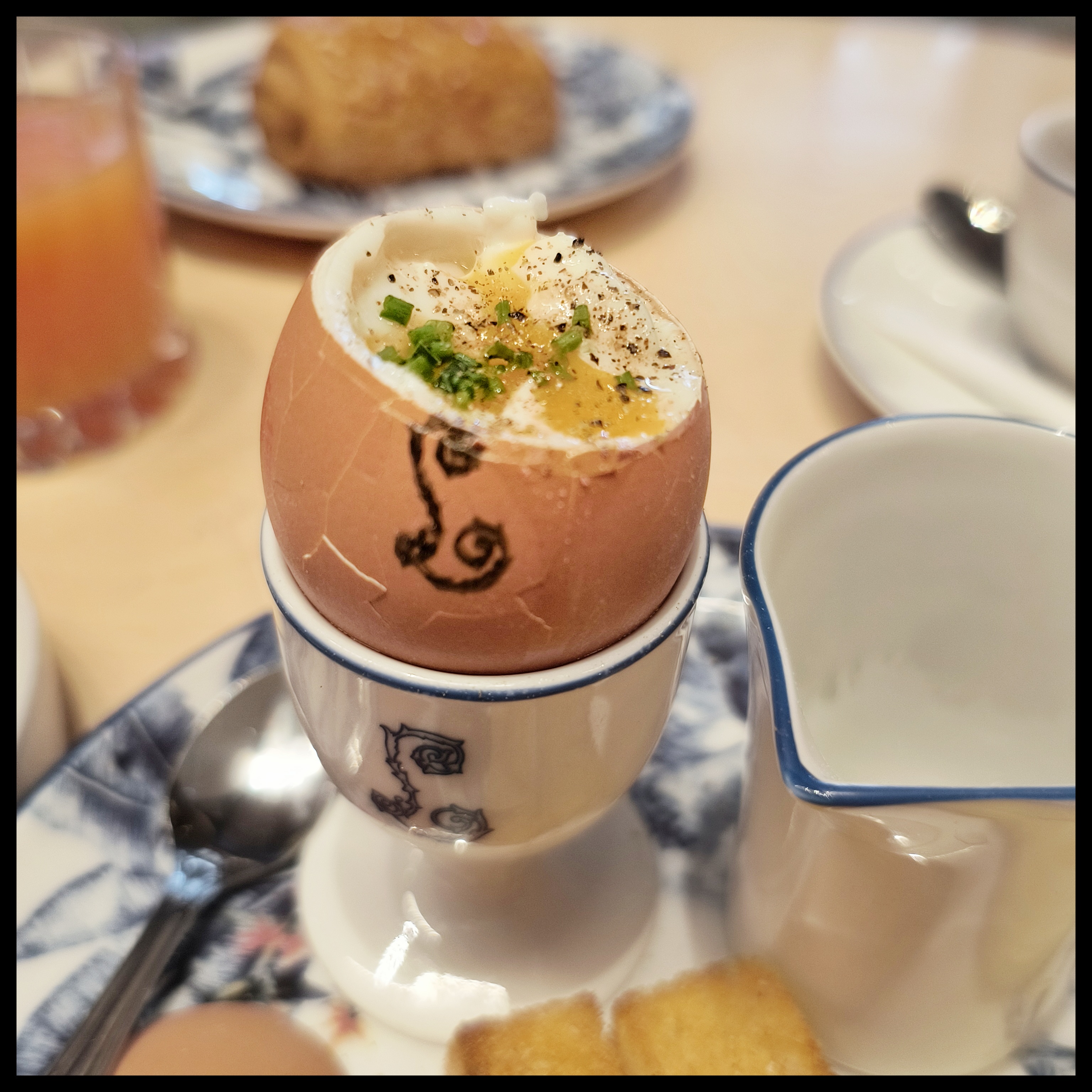 Très jolie cadre et très bon petit déjeuner. Nous avons cependant été déçus du service qui n’est pas à la hauteur du prix que l’on paye et ni à la hauteur du cadre. Le serveur était très sympathique mais il a cassé le coquetier en souhaitant ouvrir un œuf à la coque. Ça c’est une chose et ça arrive à tout le monde. Mais il aurait pu reprendre l’assiette et la changer car des morceaux de verre auraient pu être projeté dans la nourriture à côté. De plus, nous avons attendu trop longtemps à la fin pour être débarrassés et pour demander l’addition, aucune trace de serveurs… je me suis levée alors pour payer. C’est dommage car c’est un joli cadre et les produits étaient bons. La formule petit déjeuner reste chère (26e) mais je trouve qu’on a quand même bien mangé (mais ne prenez pas simplement une viennoiserie, c’est peu comparés aux toasts de confitures qu’on vous propose).