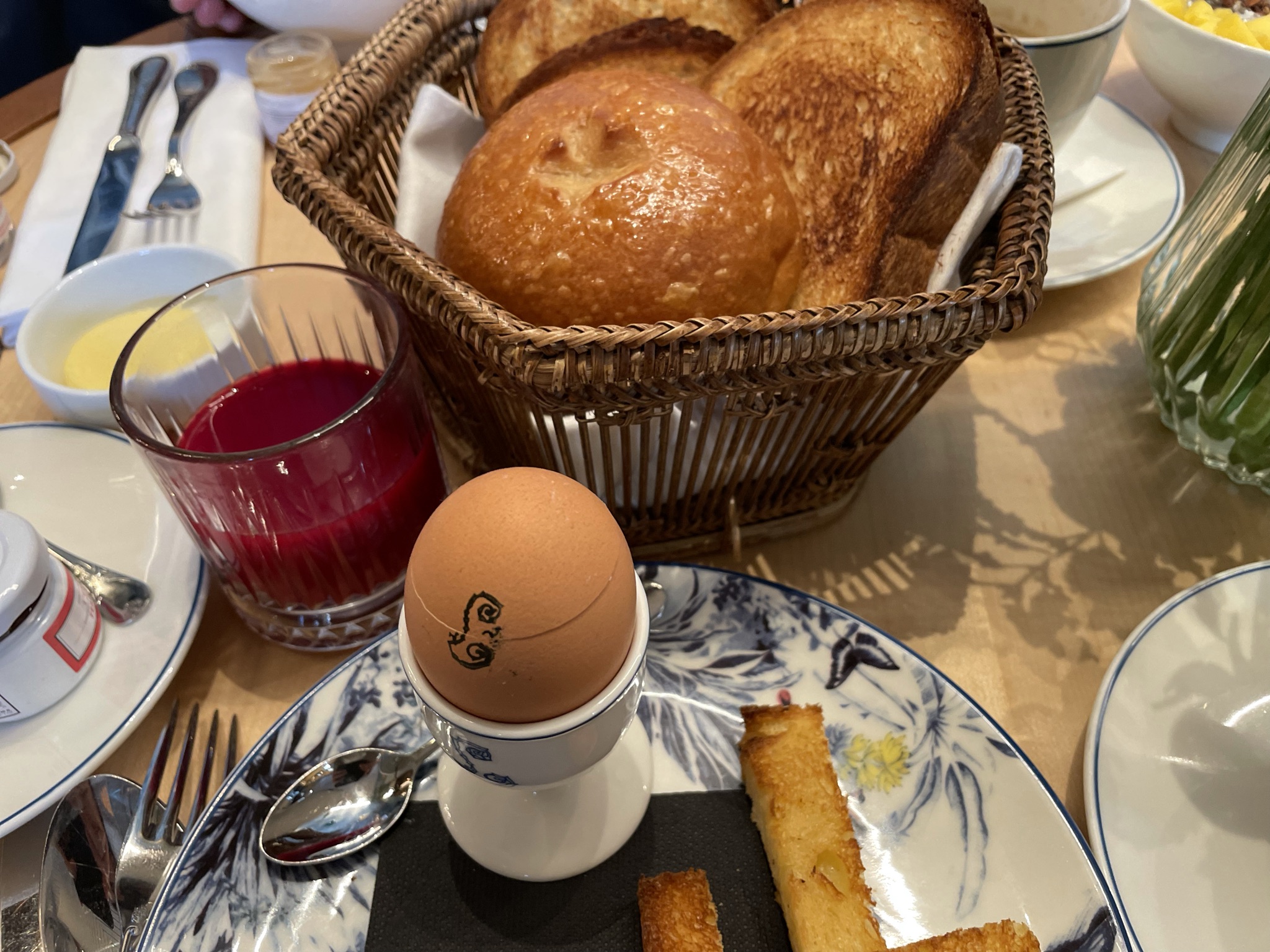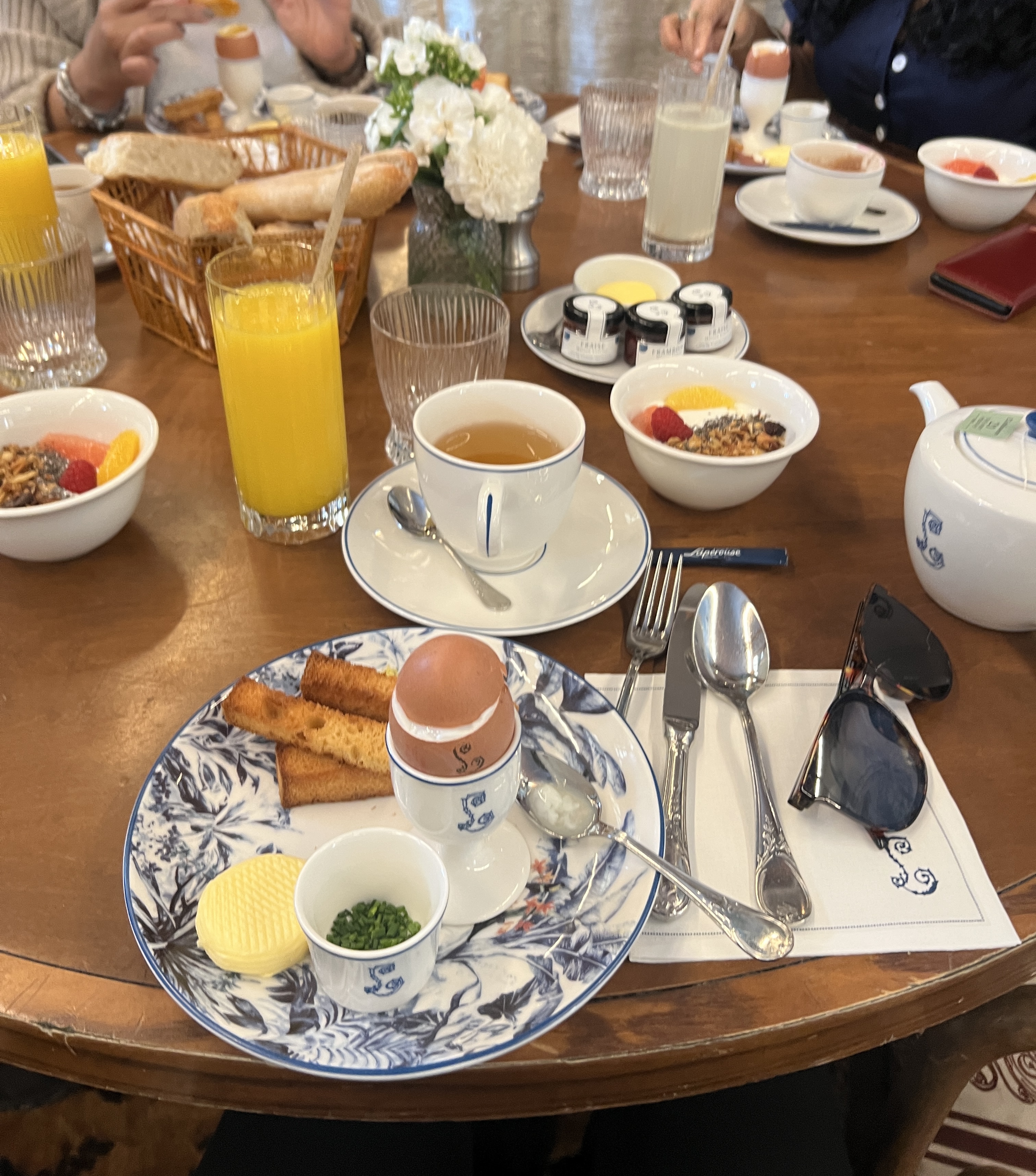 Magnifiquement situé dans l’Hotel de la Marine tout juste restauré, le Café Lapérouse propose un petit déjeuner dans un cadre exceptionnel. Compter 26 euros par personne, incluant l’œuf cocotte mythique parfaitement cuit, un granola maison (on regrettera que les fruits ne soient pas de saison et donc pas mûrs, la mangue dure comme de l’ananas… sans le goût), une boisson chaude (le café est très très bon), un jus de fruits pressés (on vous recommande celui à la carotte, doux et acidulé. Mais là encore, on sent des fruits et légumes un peu à l’économie). On regrettera que ce petit déjeuner impose aux convives de choisir entre un toast ou une viennoiserie, une corbeille mixte serait plus élégante, quitte à augmenter un peu le prix de 2 ou 3 euros si vraiment il y a un problème de rentabilité… le service est inégal, certains serveurs sont d’une rare gentillesse, prévenants et attentionnés, d’autres semblent limite excédés. En somme, du très bon et du très beau plombé par des petites choses qui gâchent un peu le moment, c’est dommage.