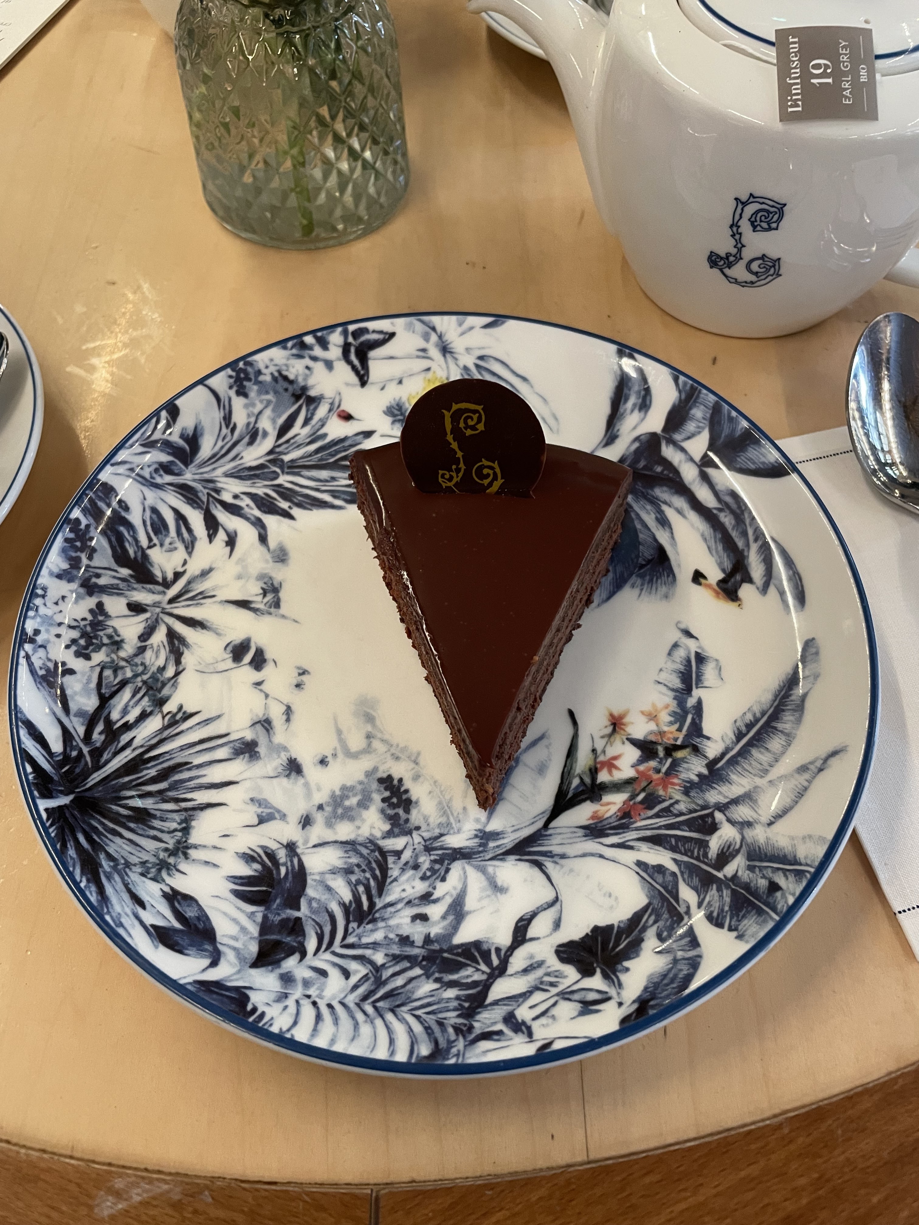 Lieu très agréable, confortable, raffiné mais le choix de la musique insipide et par ailleurs trop forte, n’est pas en adéquation avec le cadre. Une serviette même en papier et un petit verre d’eau auraient été les bienvenus pour accompagner le chocolat viennois par ailleurs délicieux.