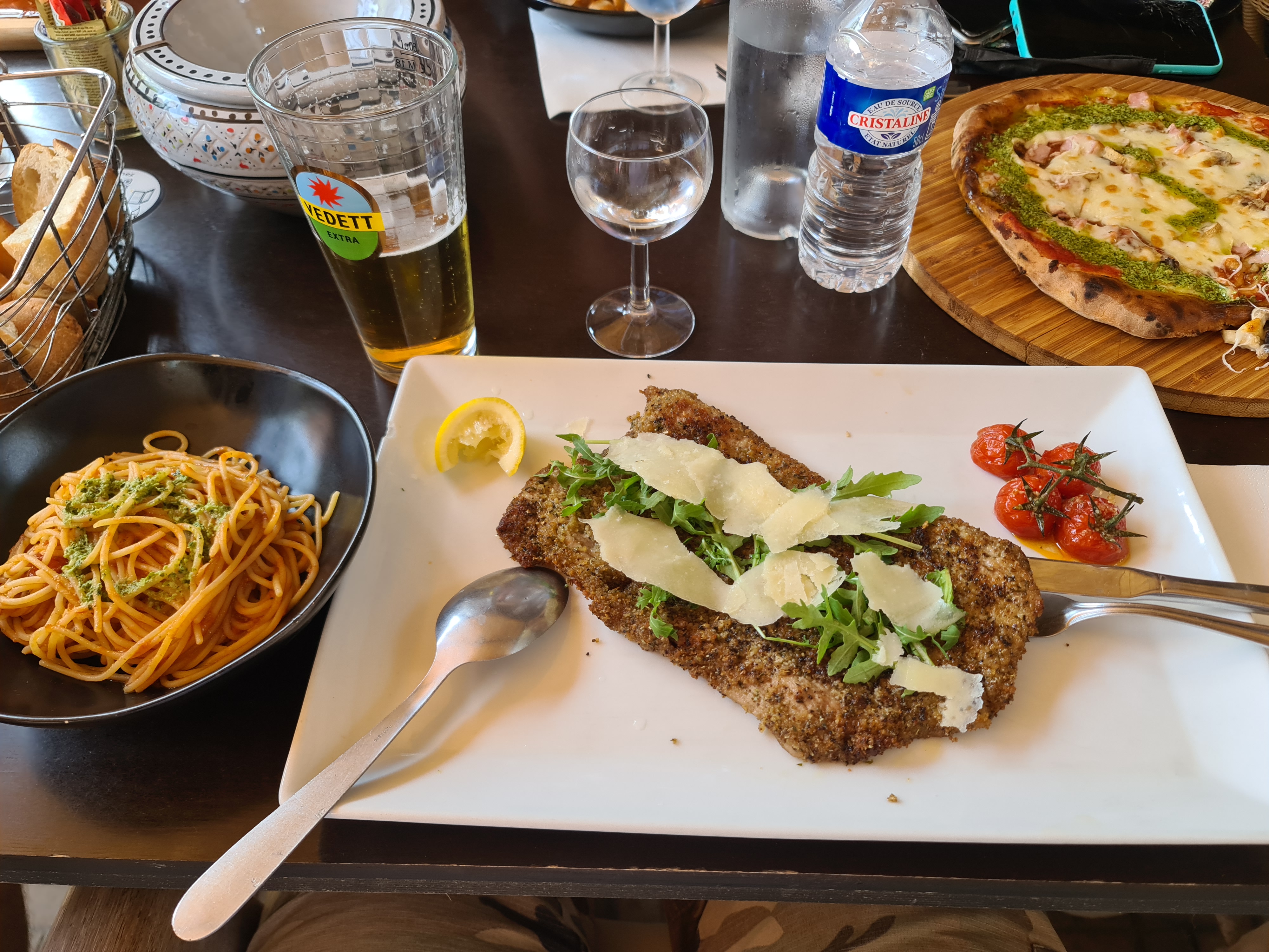Repas du midi à deux, très bien installés en terrasse au soleil. Repas copieux : -Gnocchis al tartuffo excellent, cuisson et assaisonnement parfaitement maîtrisés. -Chèvre chaud excellent, le chèvre est généreux et bien accompagné sur ses tranches de pain grillés à l’huile d’olive, salade très bonne. !!! Île-flottante, dessert fait maison qui rappel le goût de notre enfance. Extrêmement généreuse, excellente tenue, ferme et à la fois onctueuse accompagnée de sa crème anglaise délicieuse !!!