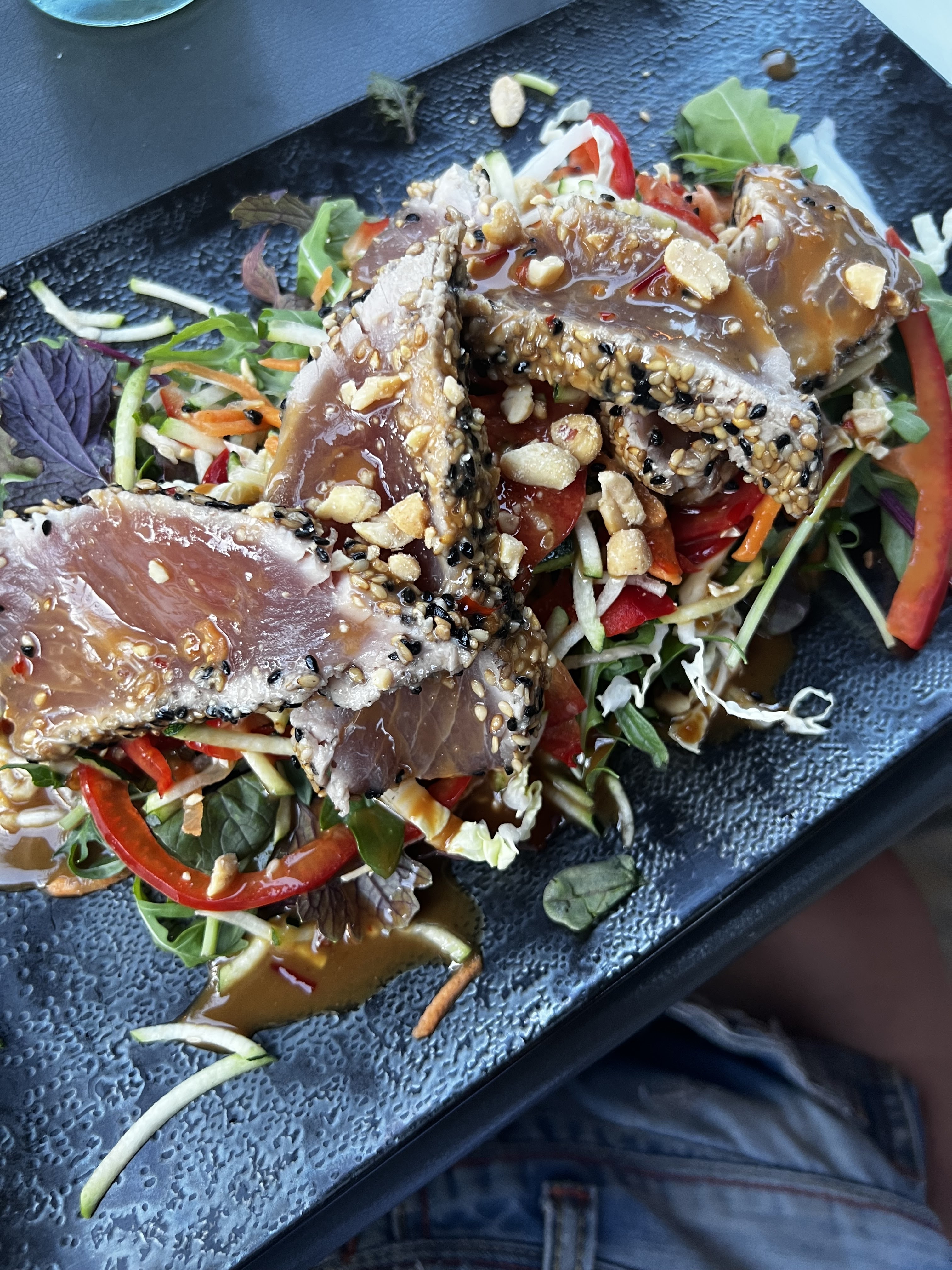 1ere expérience et pas déçue, accueil sympa et excellente cuisine, takaki de thon thaï et salade croquante délicieux. Très bon rapport qualité prix, les desserts sont maison non goûtés pour ma part ! Terrasse ombragée, service rapide, je recommande sincèrement