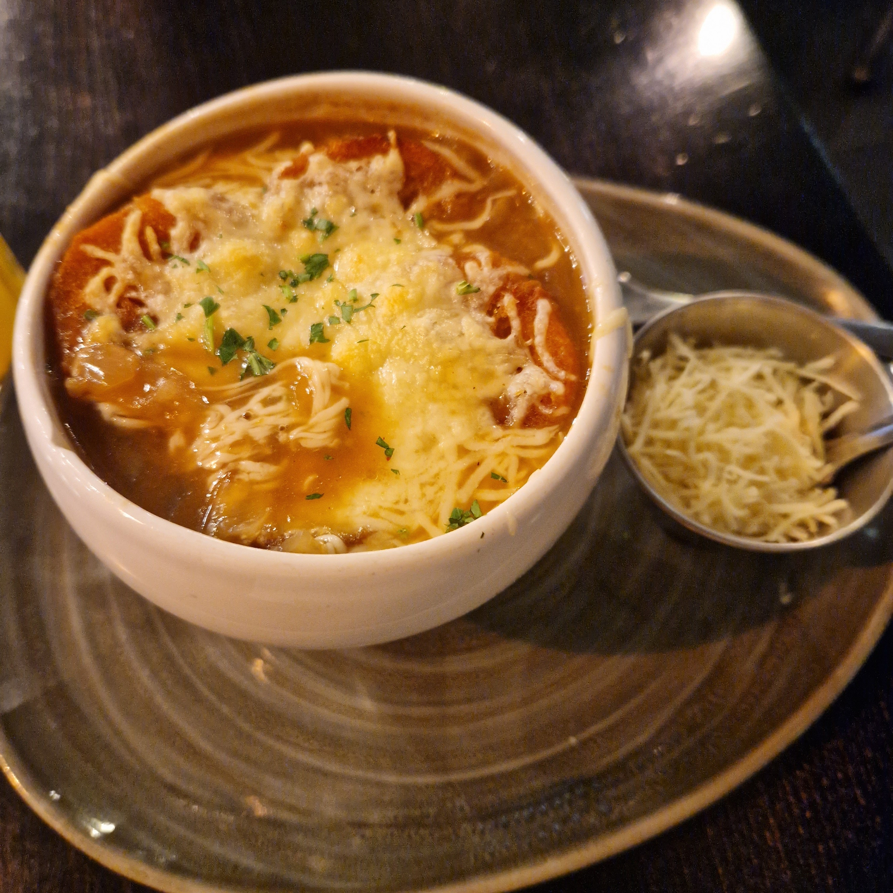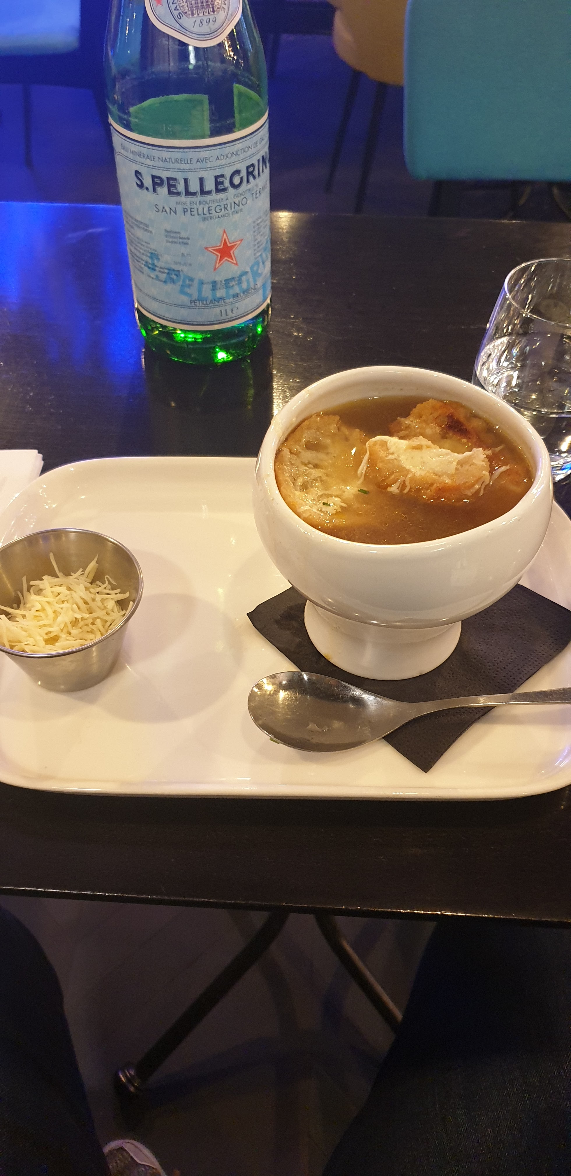 On mange une soupe à l'oignon et on se sent mal après, la première image est fausse. Ne prenez pas la soupe à l'oignon car le reste est ok, les hamburgers sont ok aussi. Le service est excellent.