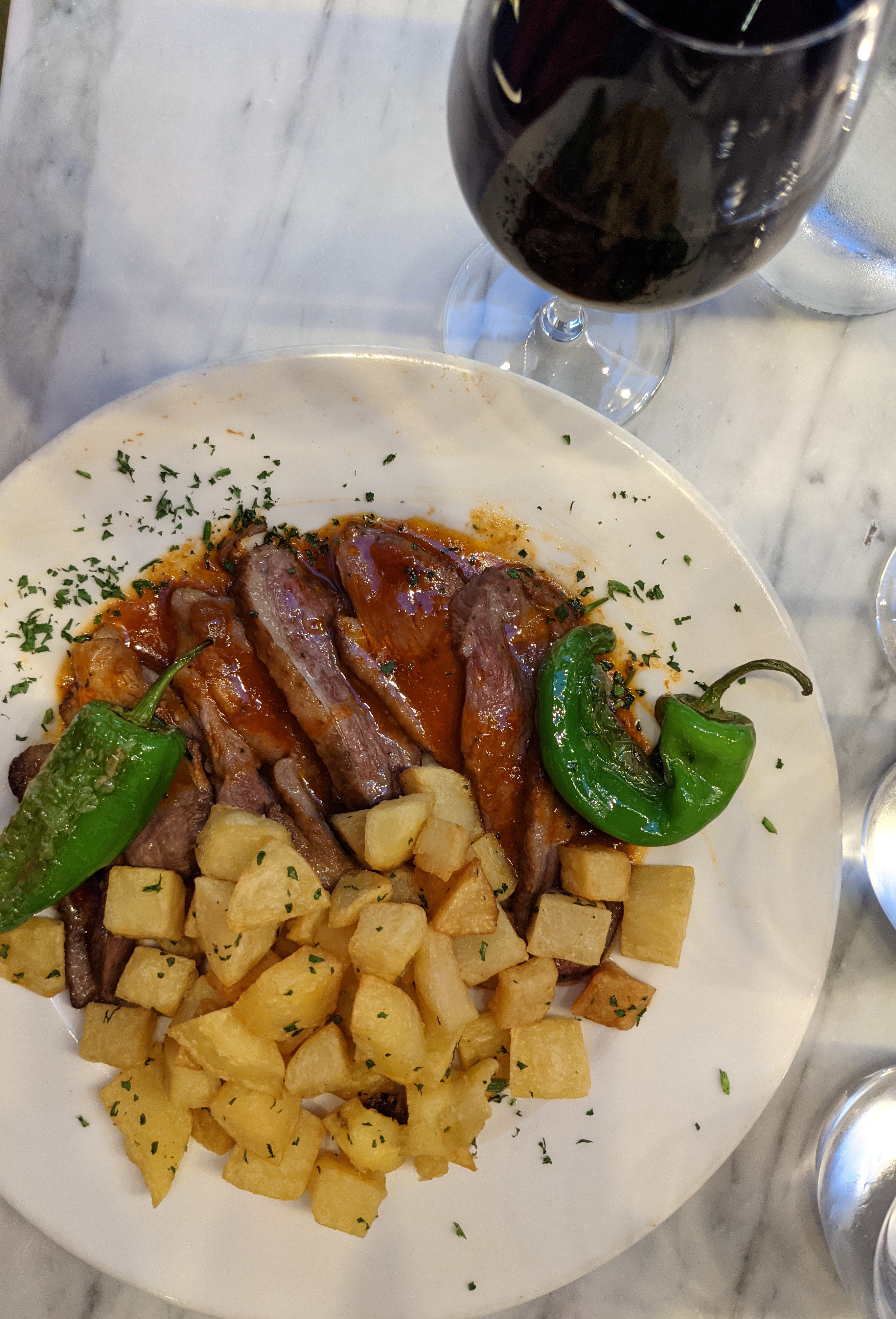 Le foie gras est du pâté, mais je l'ai vraiment aimé. Les escargots sont un peu petits mais quand même très bons. Le steak tartare au basilic était plein d'oignons, donc si vous aimez les oignons, vous l'apprécierez probablement. Je suis tombé sur cet endroit à la recherche de foie gras pour mon mari. il l'adore mais seulement le type poêlé, pas le pâté. . Par contre, je ne m'en soucie pas beaucoup.. ils ont annoncé du foie gras sur la porte alors nous sommes entrés. Il y avait un bon spécial pour 6 escargots, du foie gras, du saumon fumé et un verre de vin pour 25 €. , nous avons demandé au serveur si c'était du pâté, il n'a visiblement pas compris et nous a dit non, c'est du foie gras.. nous avons dit ok, nous voulons ça et j'ai aussi commandé du steak tartare. Quand le foie gras est arrivé, devinez quoi... c'était du pâté. Mon mari n'était pas content mais a dit bon parce que nous avions faim. J'ai presque tout mangé et j'ai essayé de pousser mon tartre sur mon mari. Il s'en fichait, mais en fait, je l'aimais bien. Je l'ai essayé 2 fois auparavant et je ne l'ai pas fait, mais leur pâté était différent, moins savoureux au foie et plus savoureux. C'était encore meilleur sur du pain grillé et avec le chutney.