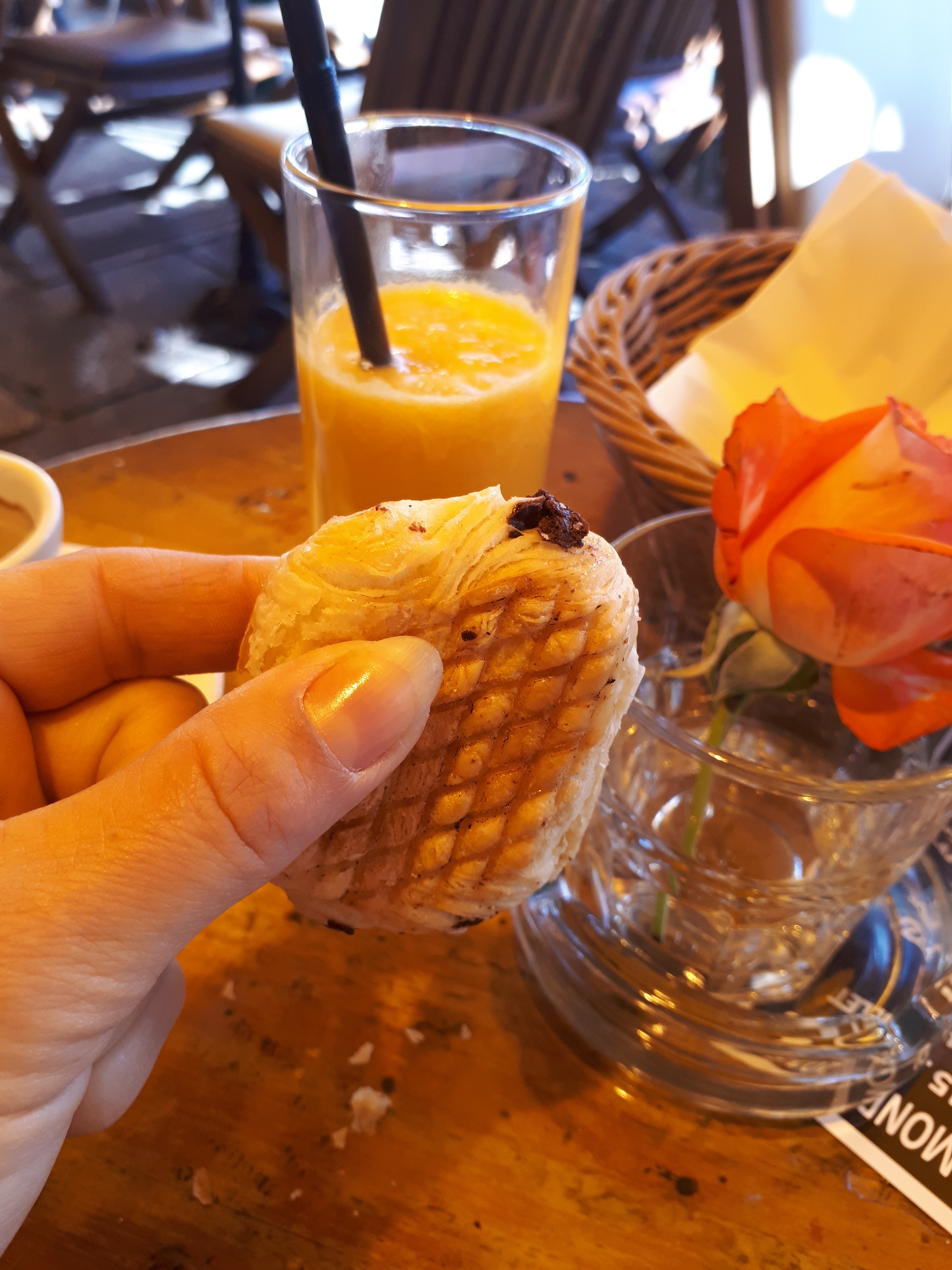 Fuyez !!! Attrape touriste par excellence, pain au chocolat surgelé (taille semblable à un nem), chocolat chaud ou plutôt froid, sans goût ! Et concernant l’assiette de fruit ou plutôt 3 tranches d’ananas recouvert d’une pauvre confiture aux fruits rouges ! Je ne recommande pas du tout.