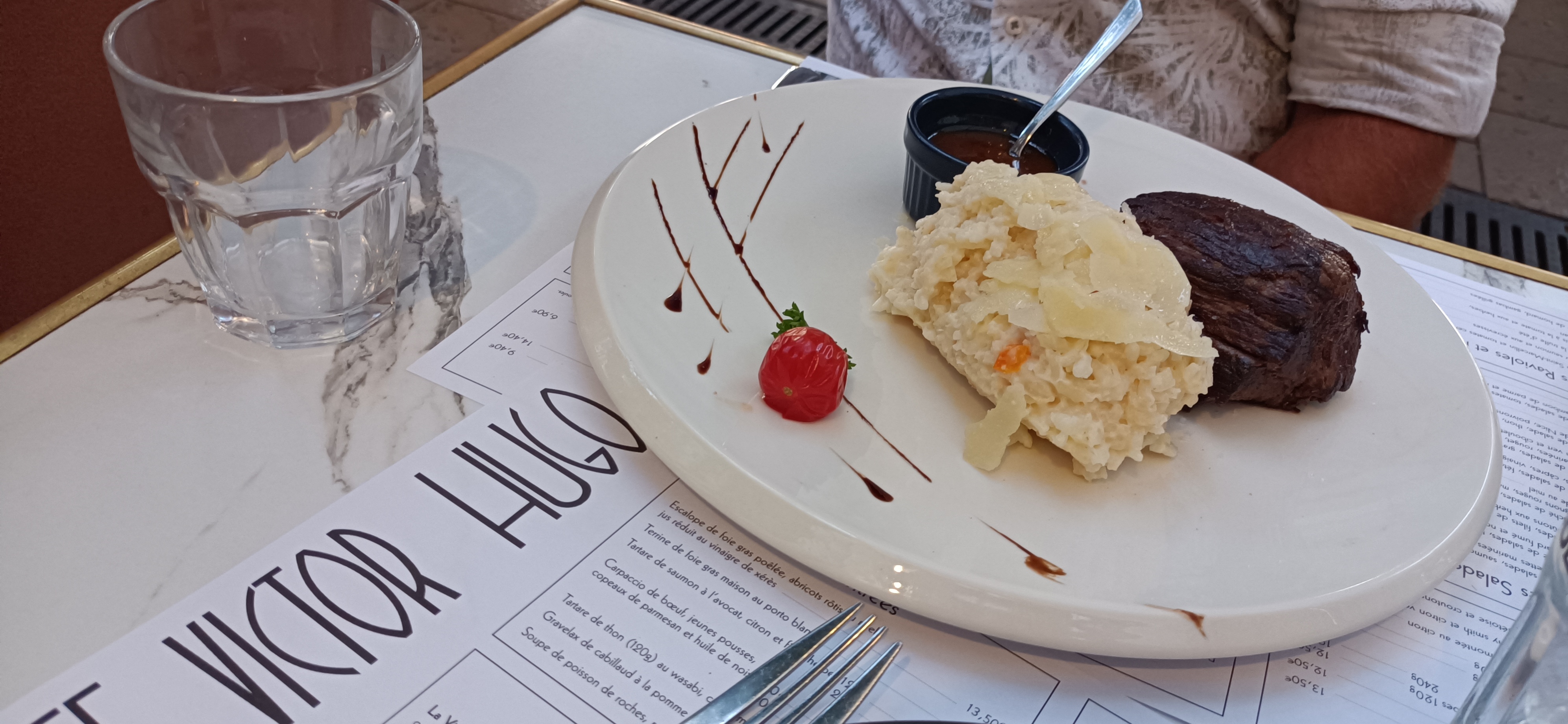 De passage à Valence pour 48h , nous avons pris 3 repas consécutifs au Victor Hugo ! La cuisine est excellente , le service efficace et sympathique et l’établissement est très bien placé , proche de la gare , des rues piétonnes et une grande terrasse donne sur le champ de mars . Il a bien longtemps que nous n’avions plus vu un plat du jour à midi en semaine à 10,90 € ! Le soir les prix sont très corrects aussi ( bon rapport qualité prix ) Nous recommandons vivement cette brasserie !