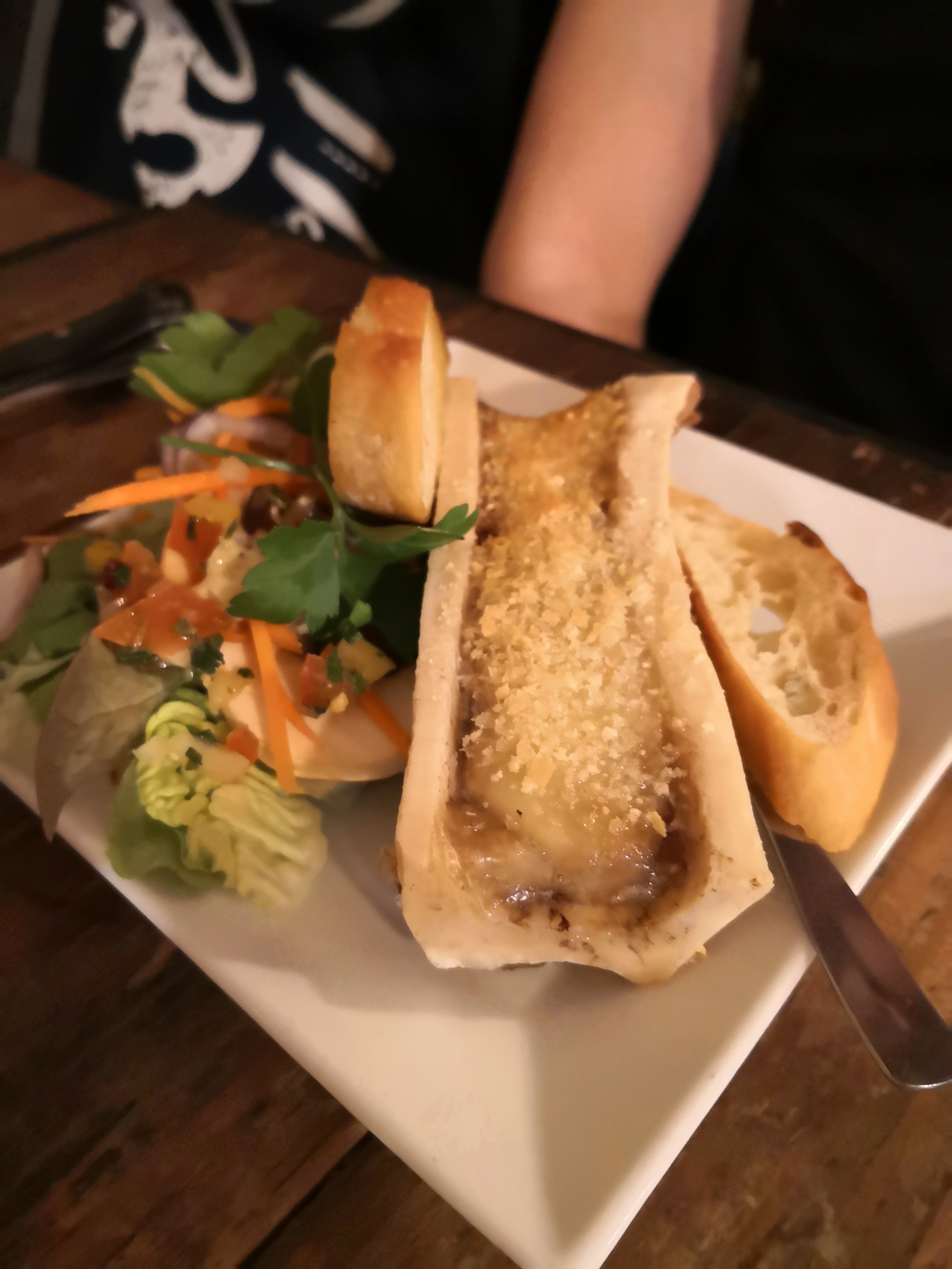 Ambiance sympa, serveur également. Une salade à 21€ , avec du jambon de carrefour, un st marcellin ( sensé être au four) froid et dur ... et un rôti d'ananas en dessert , qui était en vrai une compote d'ananas froide... je suis déçue malgré les recommandations que l'on m'avait donné :) bonne continuation.